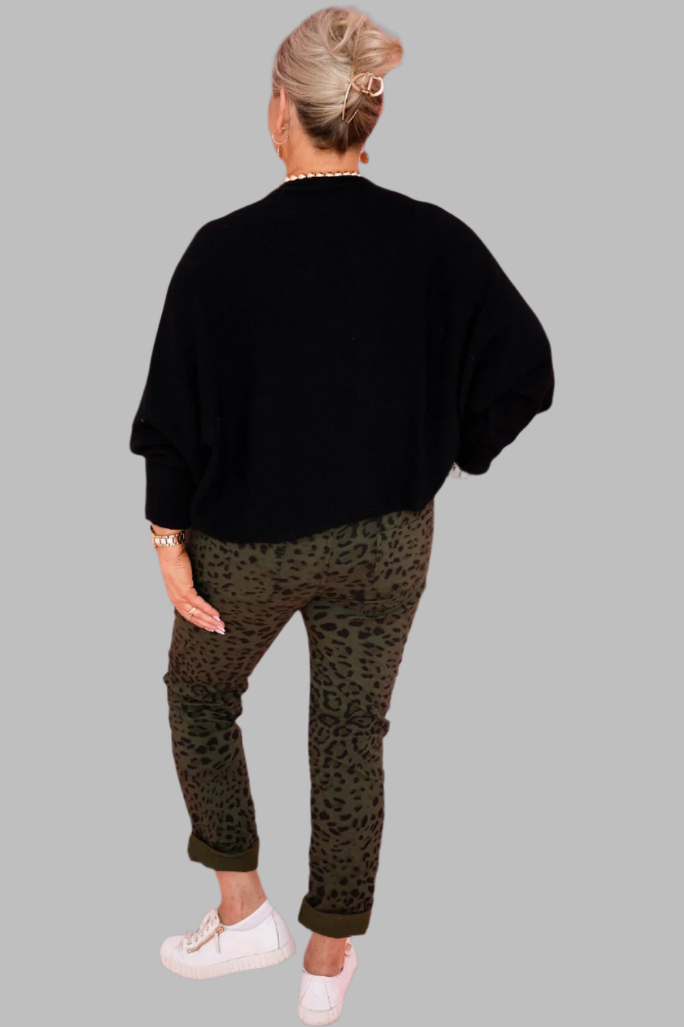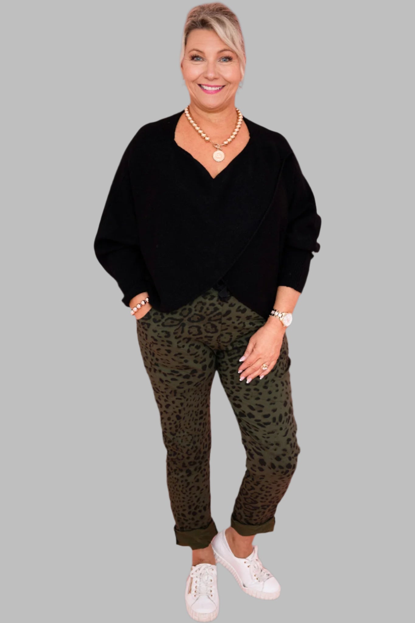 Bring effortless edge to your everyday style with our Animal Jeans in khaki leopard print. Designed in a soft, crinkle-textured fabric with just the right amount of stretch, these pants offer all-day comfort while adding a bold, modern twist to your casual wardrobe.