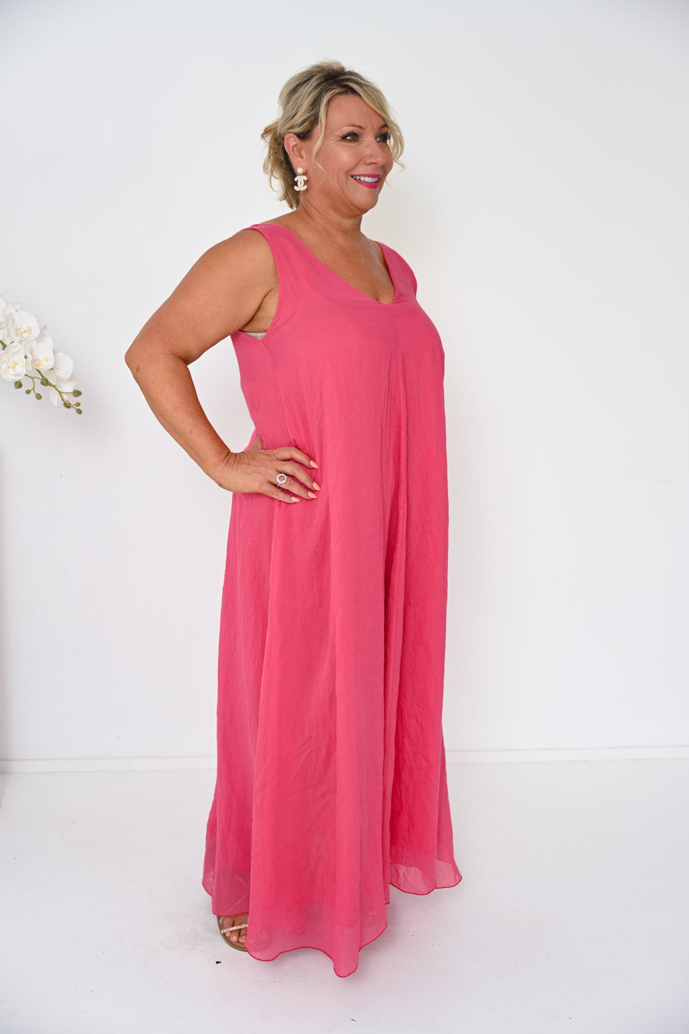 Meet the Aria Dress in radiant Coral — a flowing statement piece designed for effortless comfort and confidence. Crafted from a soft lyocell blend, this dress feels beautifully smooth against the skin and drapes with a natural, fluid movement that enhances its relaxed silhouette. Lightweight and breathable, it’s the perfect choice for warm days or balmy evenings.