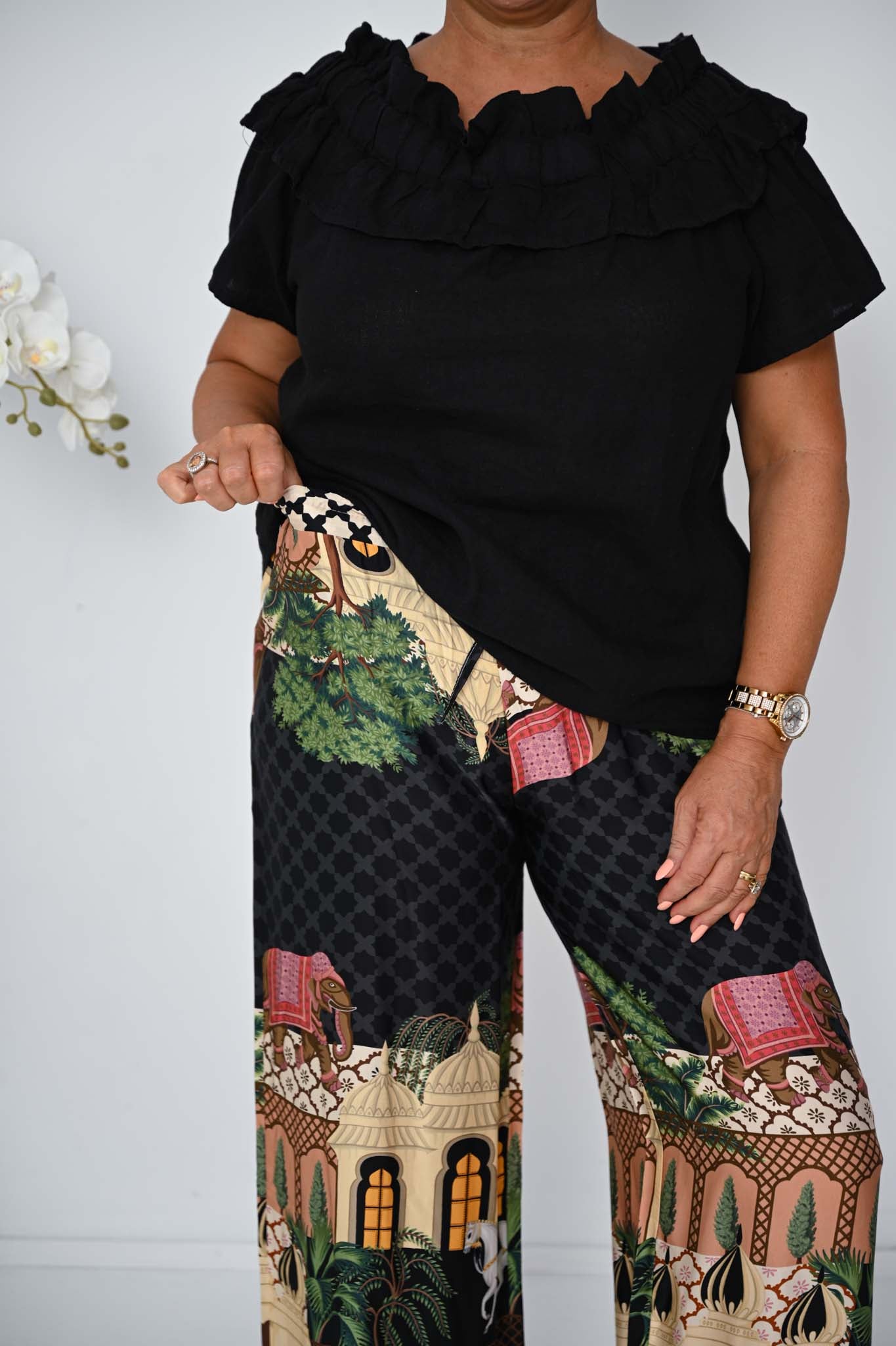 Chic enough for evening styling yet relaxed enough for everyday wear, the Avento Top in Black is a timeless wardrobe piece that pairs seamlessly with everything from tailored trousers to flowing skirts, delivering comfort with confident sophistication.