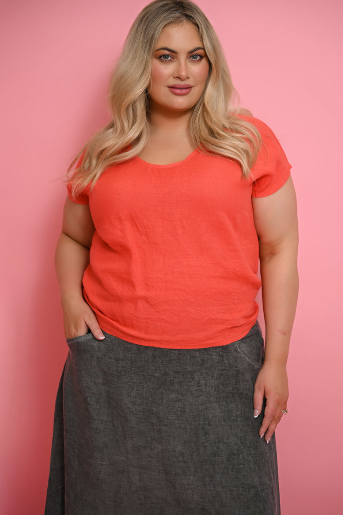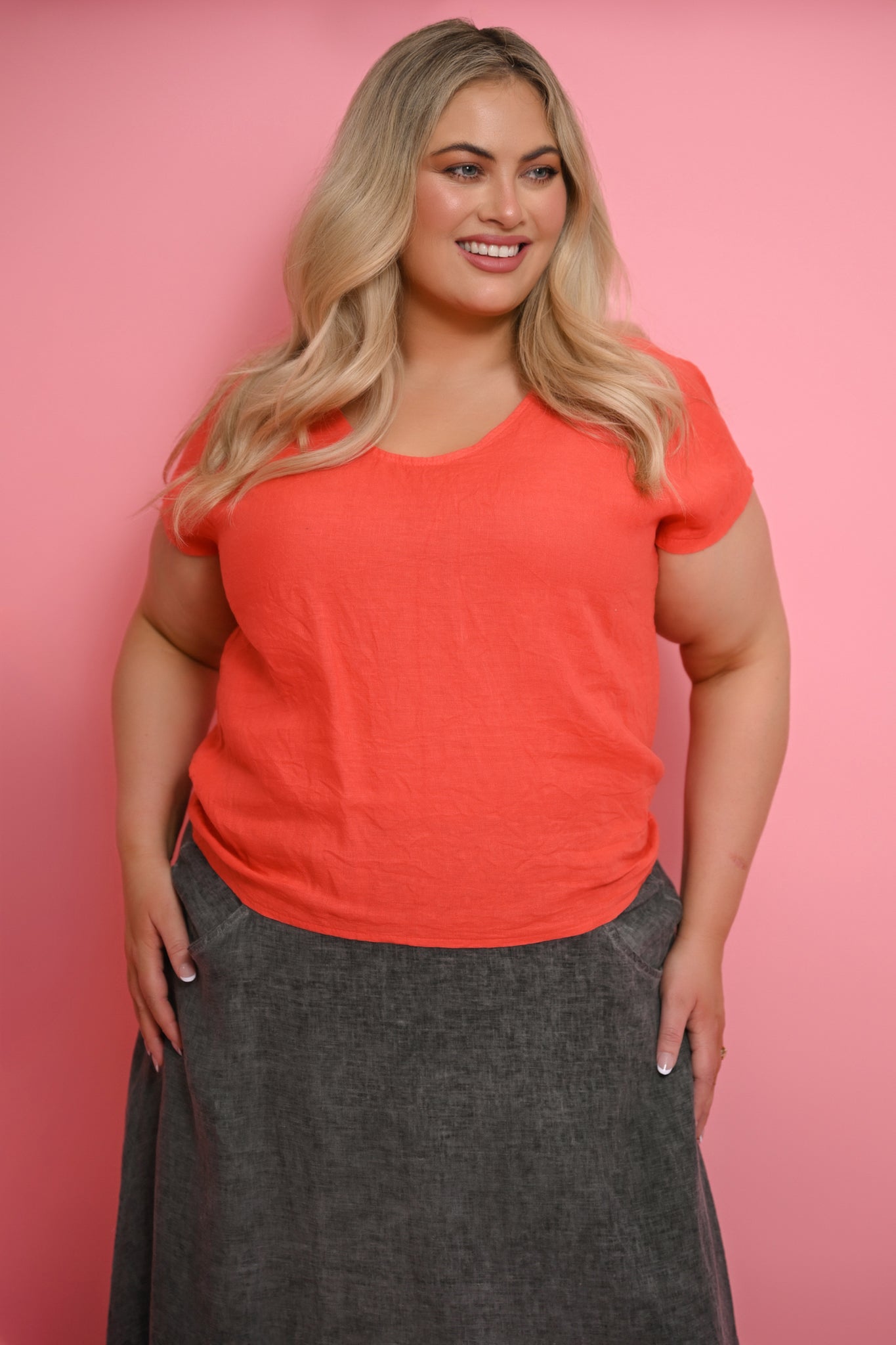 This lively coral shade is perfect for mixing and matching—pair with soft neutrals for a fresh, understated look or with other bold tones for a playful, fashion-forward ensemble. The Best Linen Tee in Coral transforms a simple wardrobe staple into a statement piece, combining vibrant colour, effortless style, and premium comfort for everyday wear.