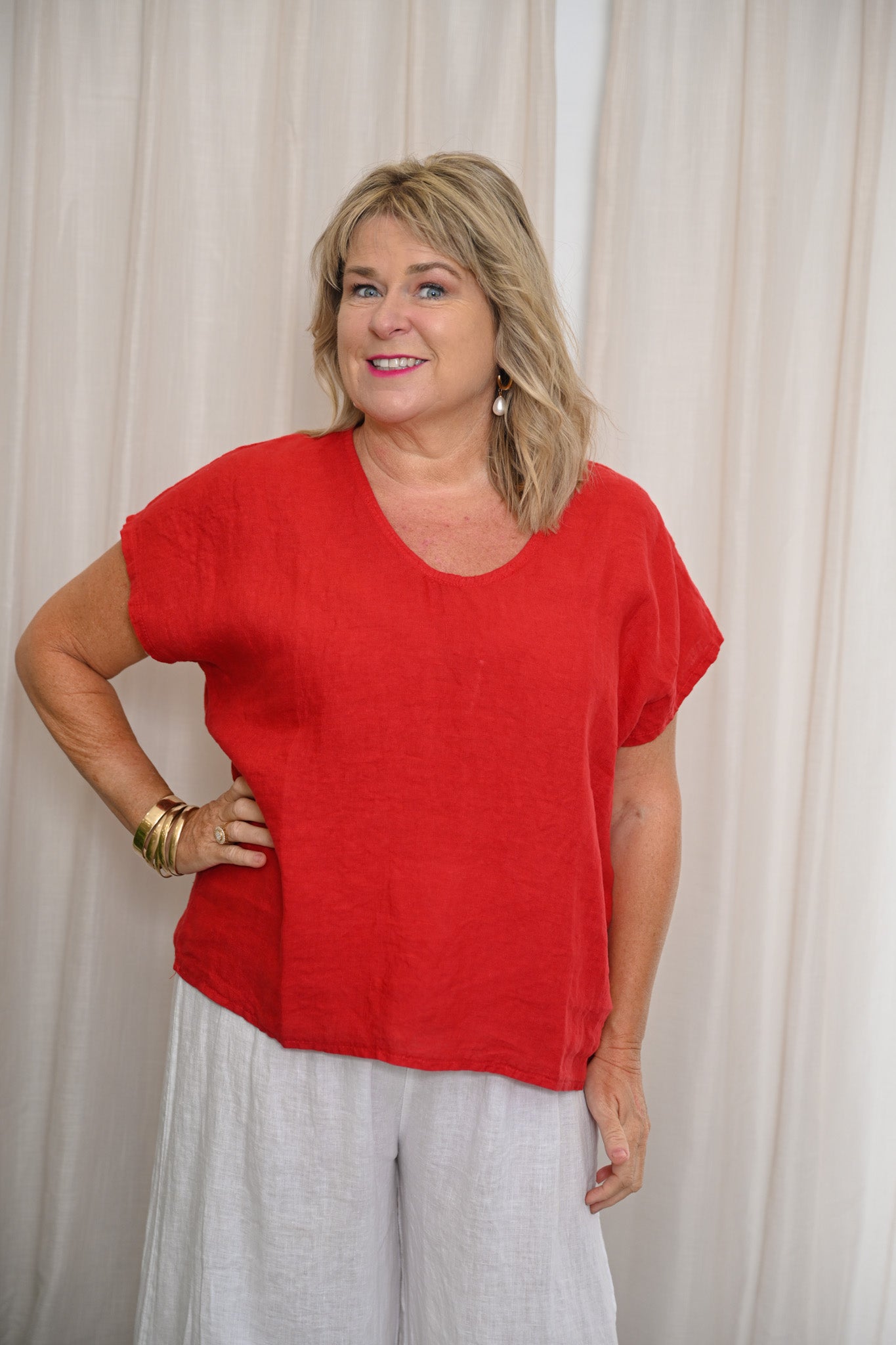 Make a bold addition to your wardrobe with the Best Tee in Red — a striking new essential designed to bring confident colour and effortless style to everyday dressing. Crafted from premium linen, this tee delivers a breathable, lightweight feel that keeps you comfortable while looking polished throughout the day.
