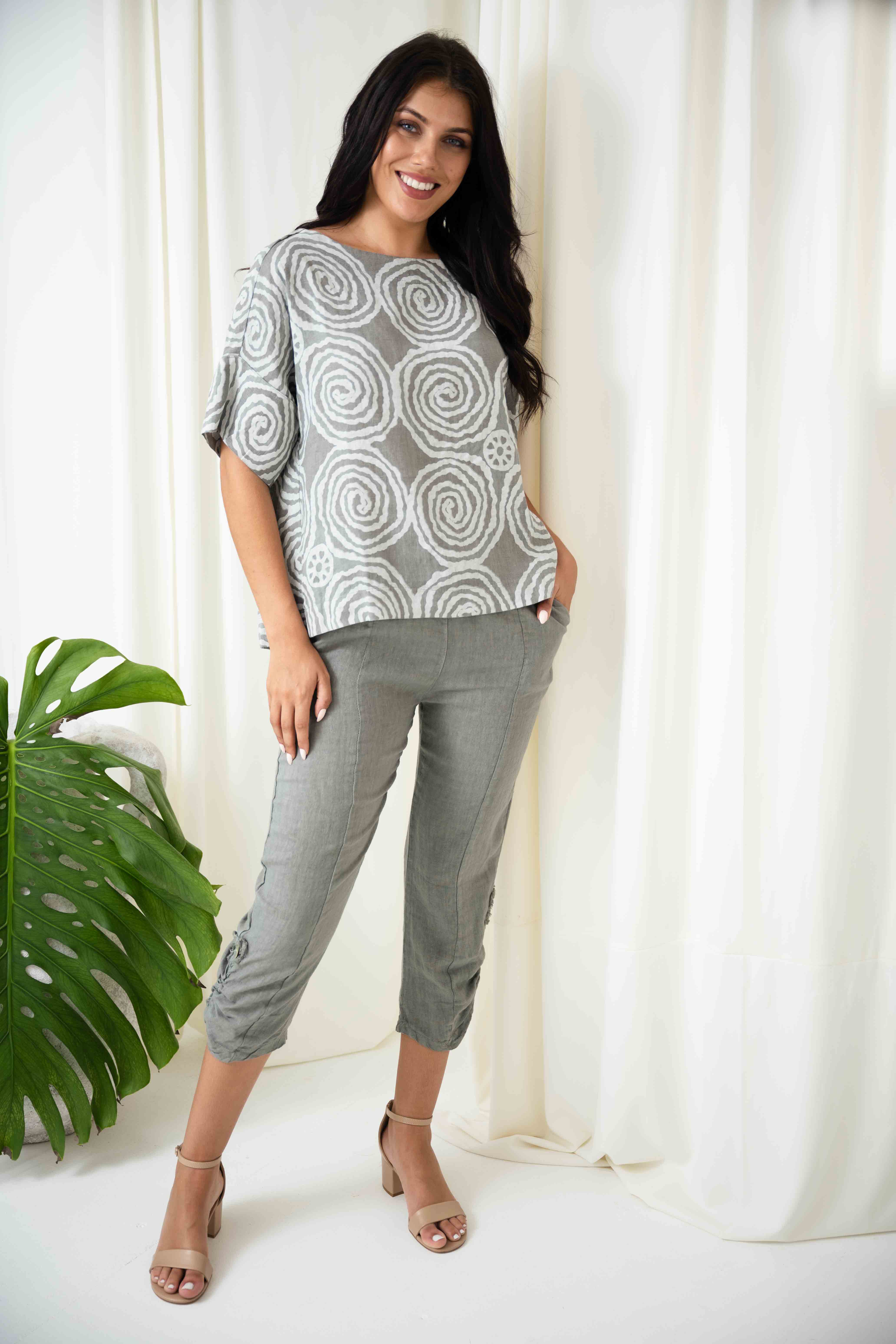 Styled with the Trento Linen Top in Drizzle Swirl, these pants offer an effortlessly cool daytime look while remaining chic and versatile for casual outings.
