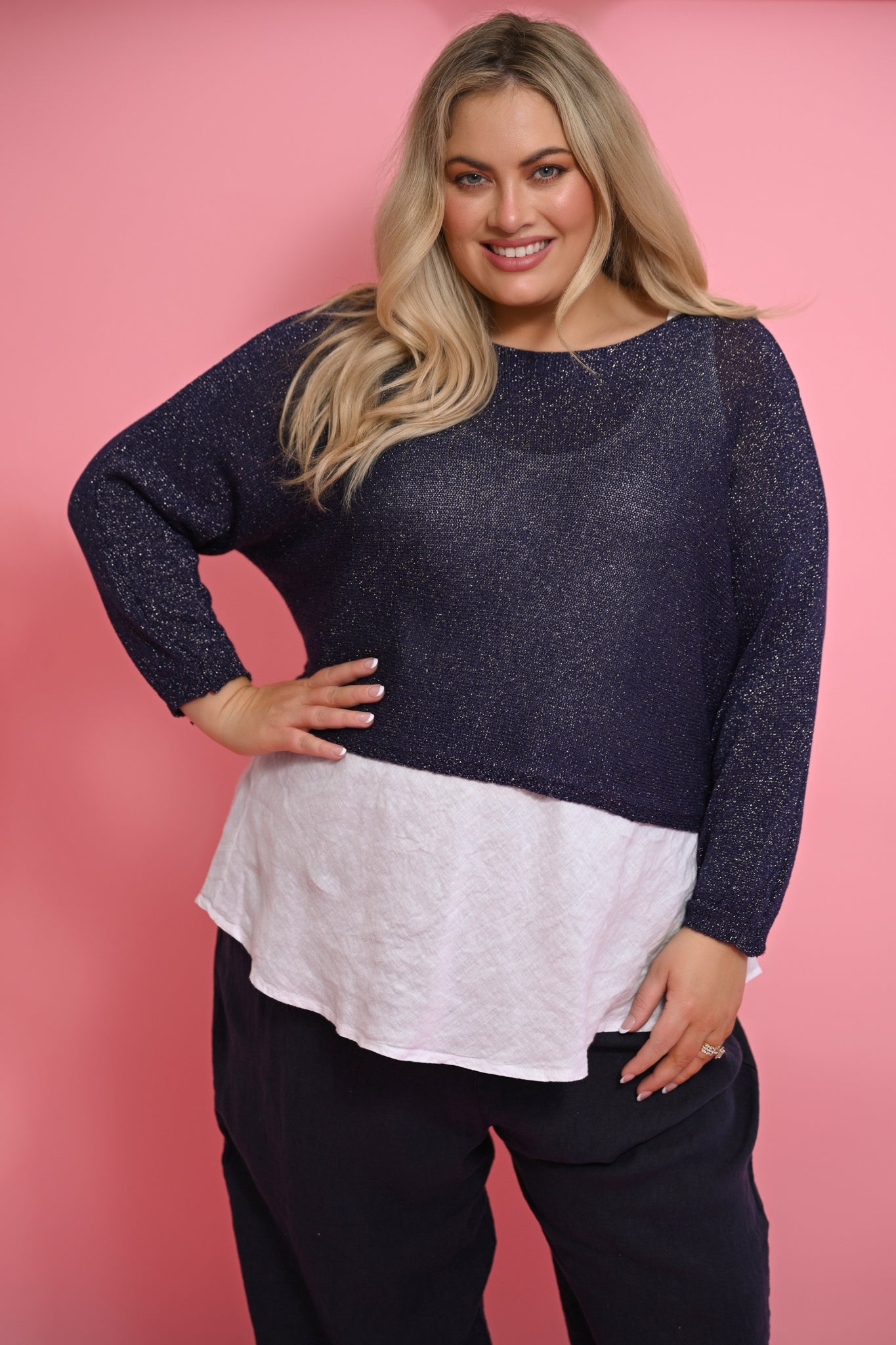 Discover deep elegance with our Chateau Knit in Navy – a rich, moody essential that brings ocean-inspired sophistication to your premium collection. This captivating knit combines the mysterious depths of midnight waters with subtle shimmer reminiscent of moonlight dancing across waves.