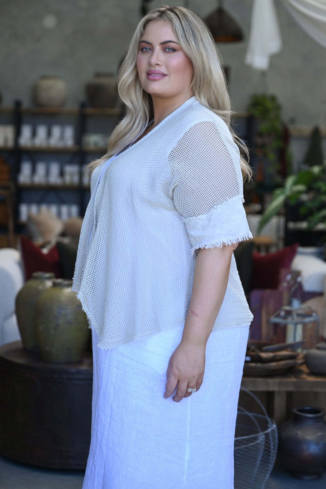 Bring a sense of relaxed elegance to your wardrobe with the Fisherman Jacket in Beige—a light and textural piece designed for effortless layering. Made from open-weave cotton, this sheer, unlined style is breathable and fluid, offering a soft structure that complements a range of outfits. The natural beige tone adds warmth and versatility, creating a calm, earthy base for both casual and more elevated looks.