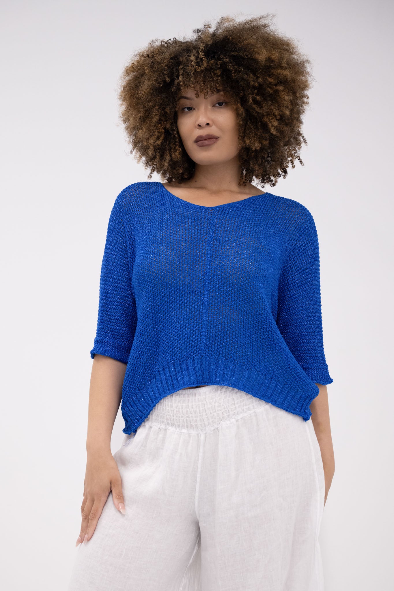 The Florence top shines with vibrant energy in a rich royal blue, offering a bold and elegant statement. Made from a soft, stretchy fabric with a shimmering metallic finish, it effortlessly blends striking style with all-day comfort.