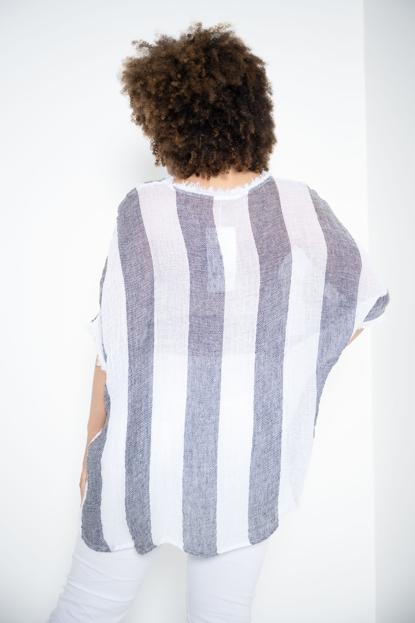The Gemelli Top in Black/Milk is a monochrome essential with a striking edge. Featuring bold vertical stripes in classic black and soft white, it combines clean lines with a relaxed, oversized silhouette for an effortlessly modern look.