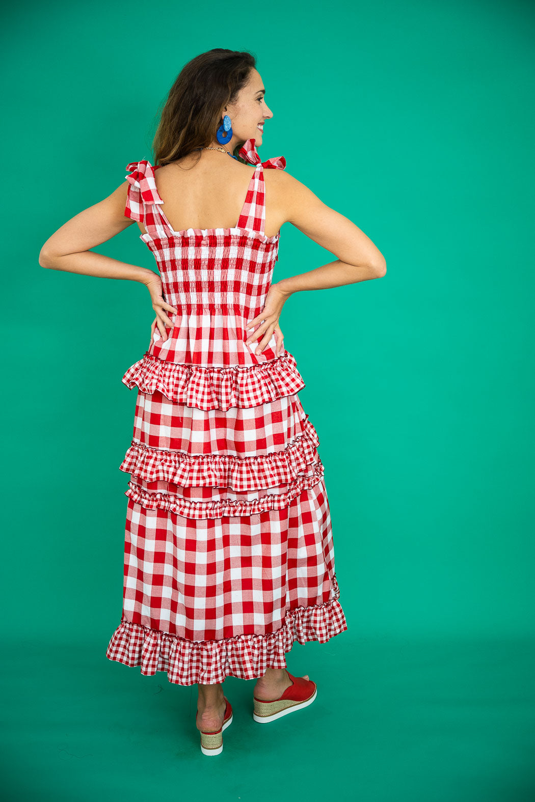 - Playful red gingham print for timeless charm