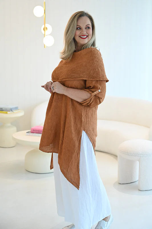 The Grande Top is a stunning addition to your wardrobe that effortlessly combines drama, comfort, and sophistication. Crafted from breathable and lightweight linen, this versatile shirt is designed to accompany you throughout the year, keeping you both stylish and comfortable.
