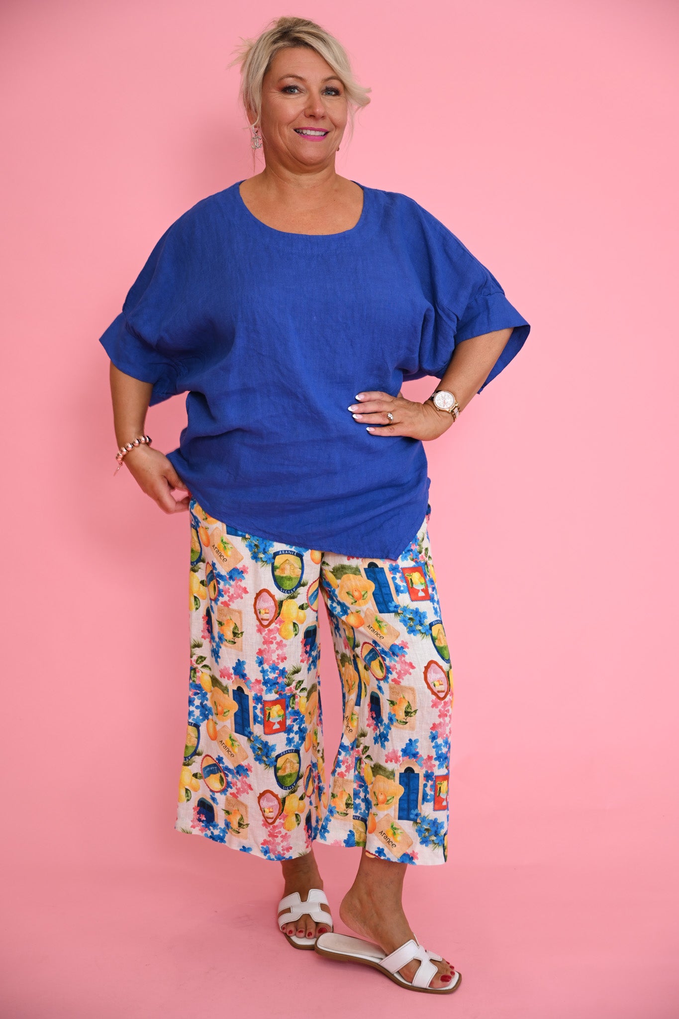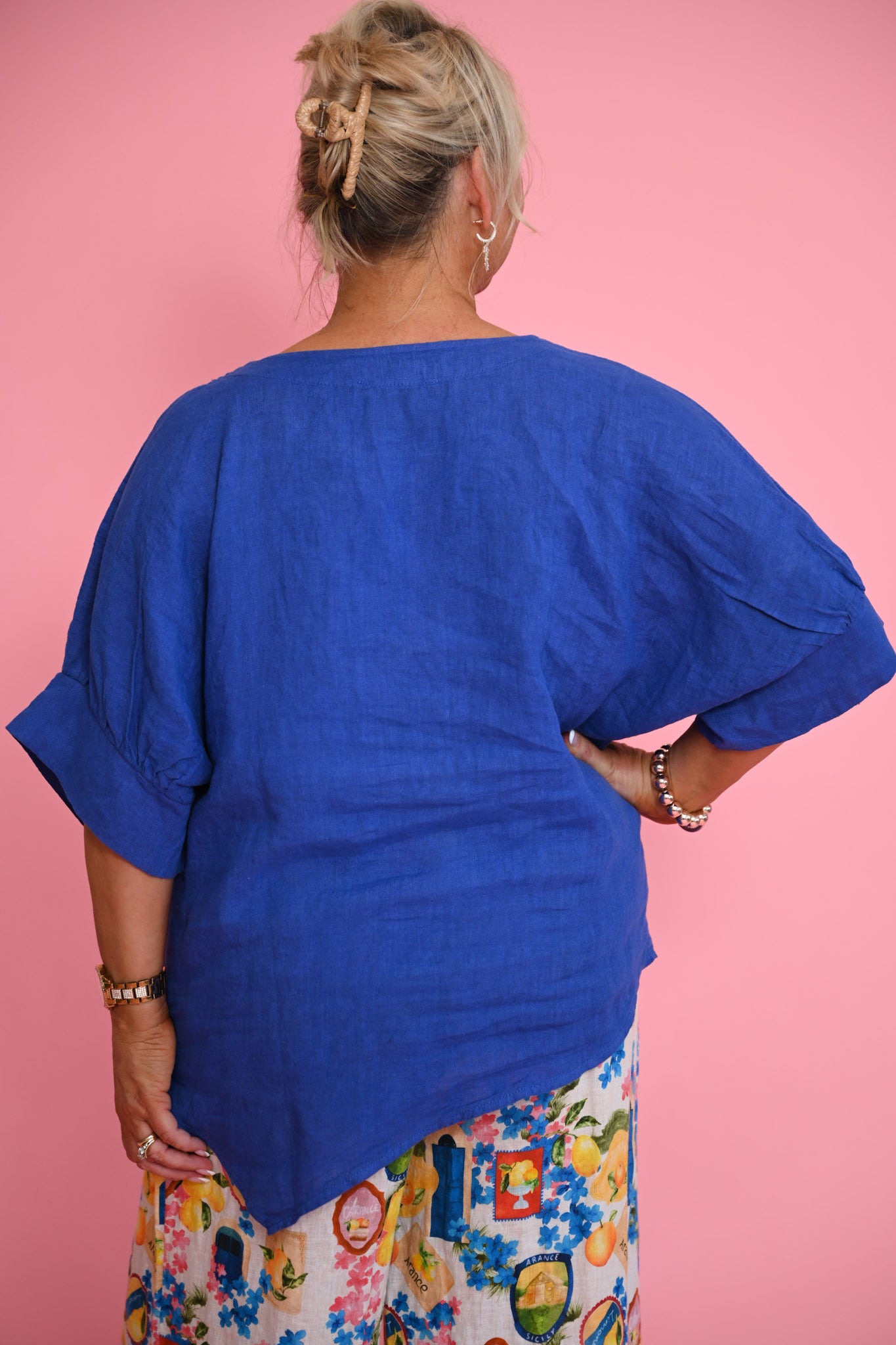 Bring confident, contemporary style to your wardrobe with the Hannah Top, crafted from 100% natural, breathable Italian linen. Designed in a rich royal blue, this top offers a striking pop of colour while maintaining an easy, relaxed silhouette.