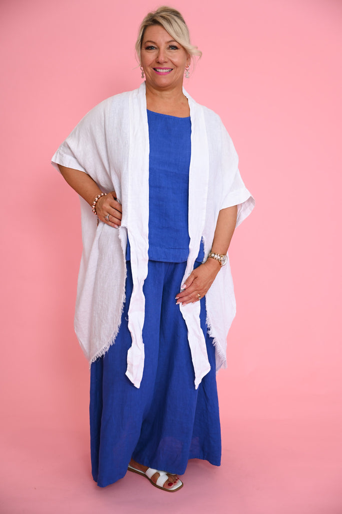 Perfect for layering over everything from tailored trousers to casual denim or summer dresses, the Isabella Top in white is a versatile wardrobe essential—refreshingly light and effortlessly elegant for any season.