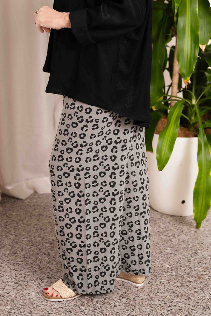 The Joan pants combine ease and style in a simple, patterned design. With a relaxed, comfortable fit, they feature a soft all-over print that adds a hint of detail while staying subtle and refined. The lightweight fabric moves fluidly, and the elasticated waistband ensures effortless wear. Minimal detailing keeps the look clean and versatile, making these pants an easy choice to pair with plain tops or knitwear for a modern, laid-back look.