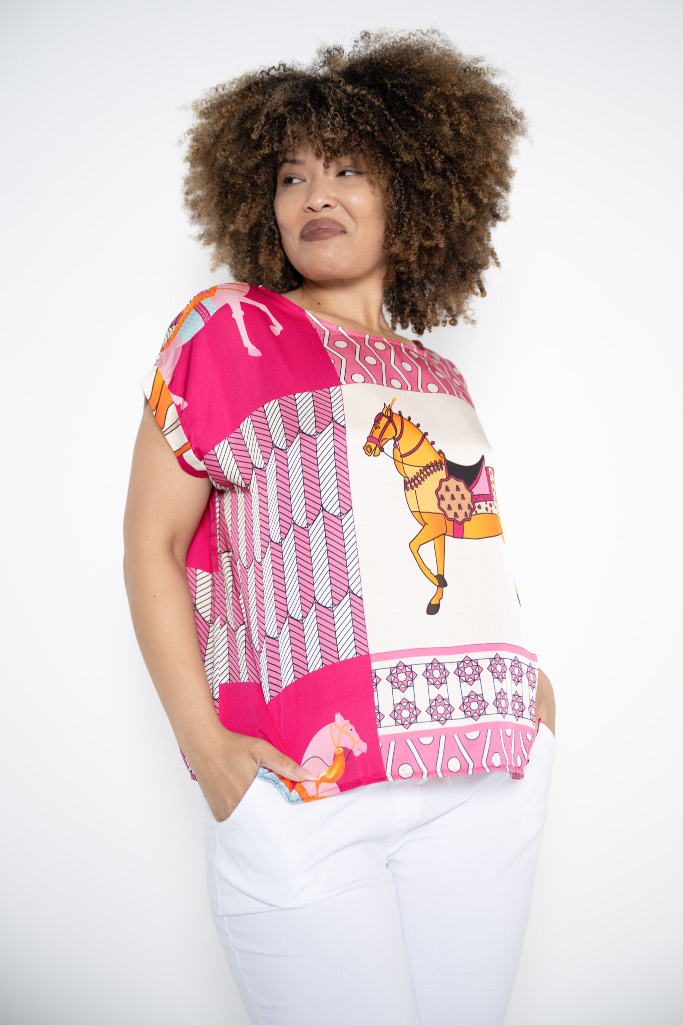 Lightweight and expressive, the Horse Top in Fuchsia brings energy to any outfit—perfect for pairing with simple bottoms or worn as a vibrant set with the matching piece. A statement without trying too hard.