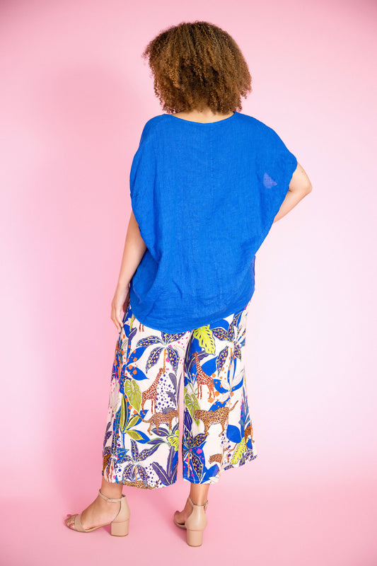 Stand out from the crowd with our Kenza Linen Pants in Cobalt, a timeless staple with exotic charm and summer appeal.