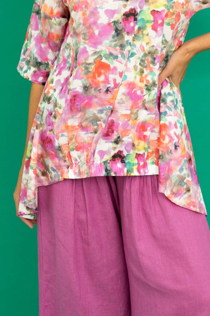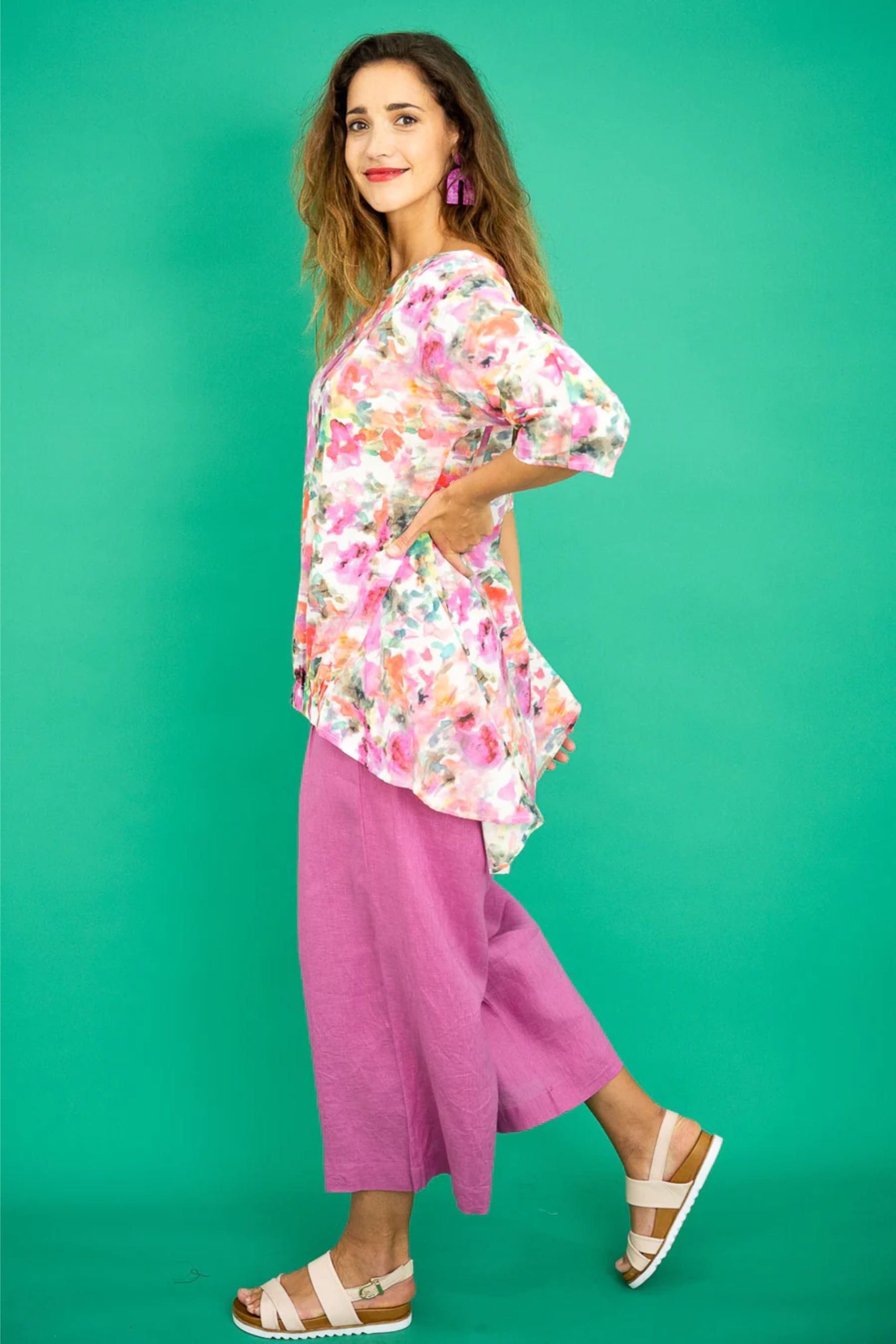 The all-over floral print in soft purple tones create a dreamy aesthetic, making this top a perfect pairing with soft coloured culottes. Embrace the dreamy and botanical vibes with the Purple Florence Top.
