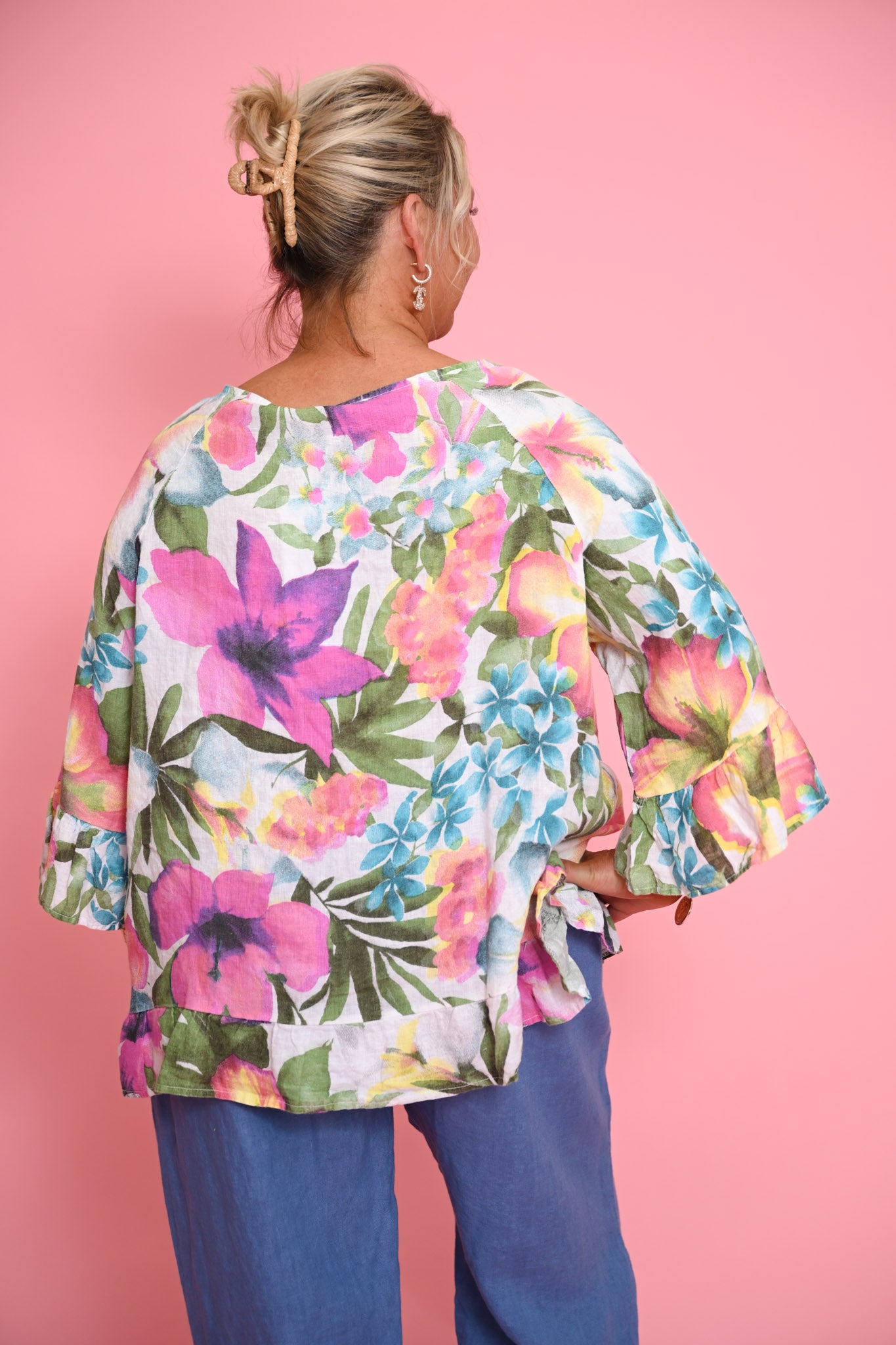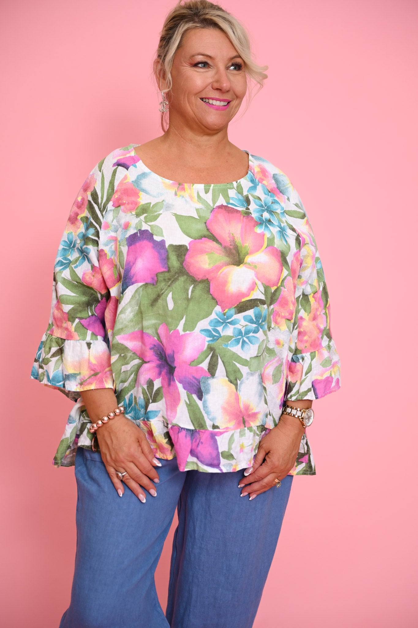 Add a fresh, spring-ready touch to your wardrobe with the Lucie Pattern Top, crafted from 100% natural, breathable Italian linen. Designed with a classic round neckline, this plus-size top offers a relaxed, flattering silhouette.
