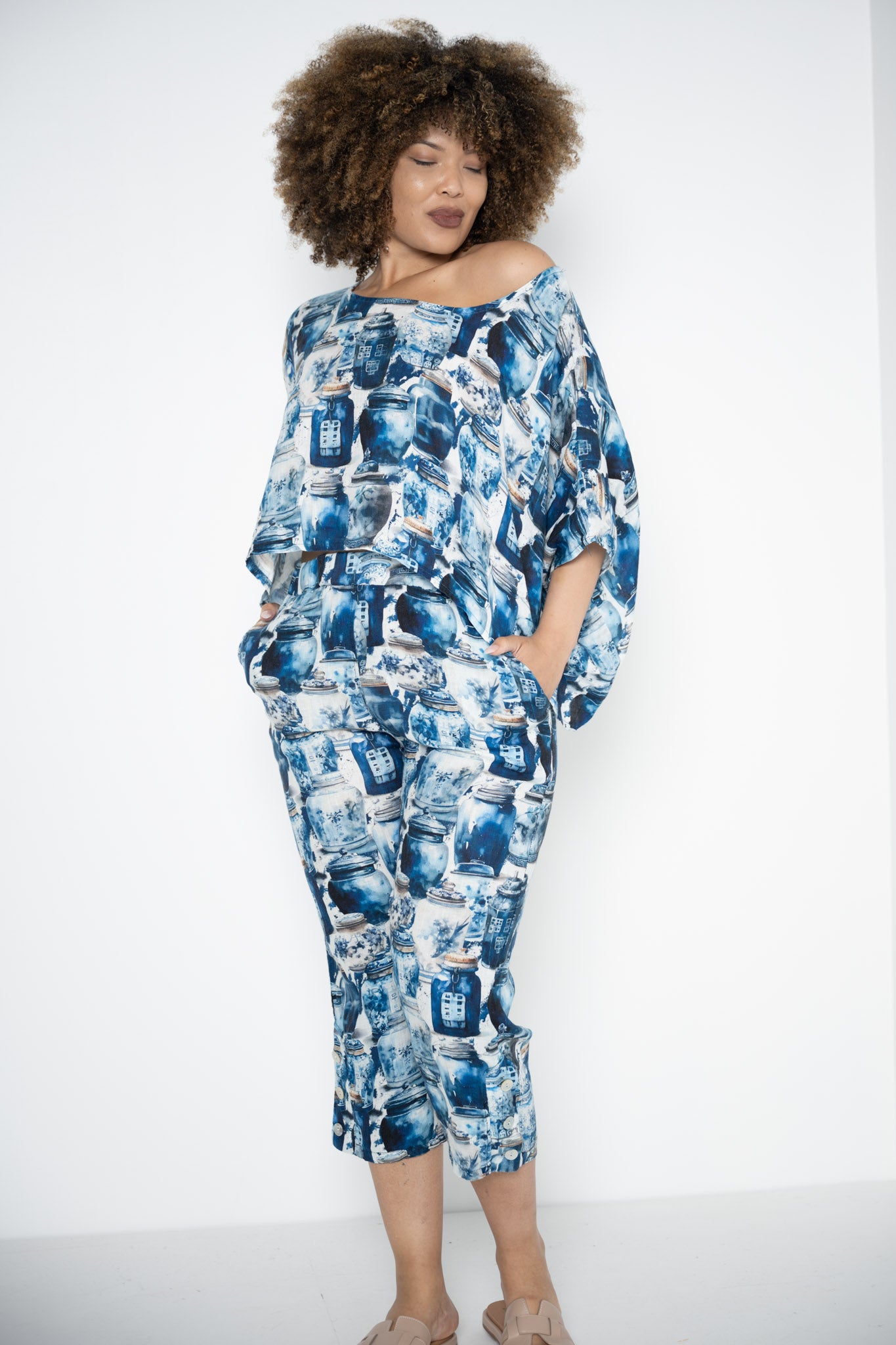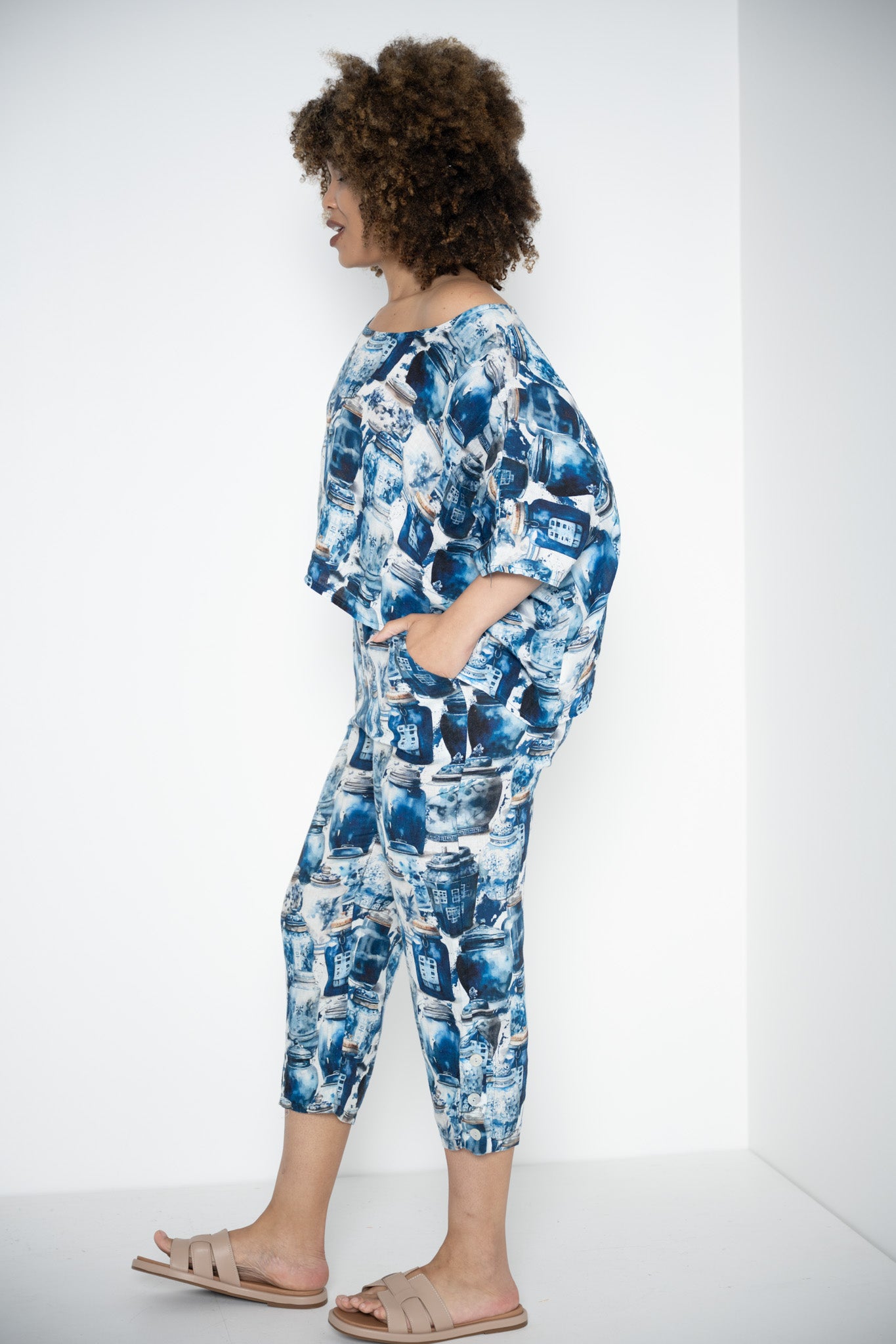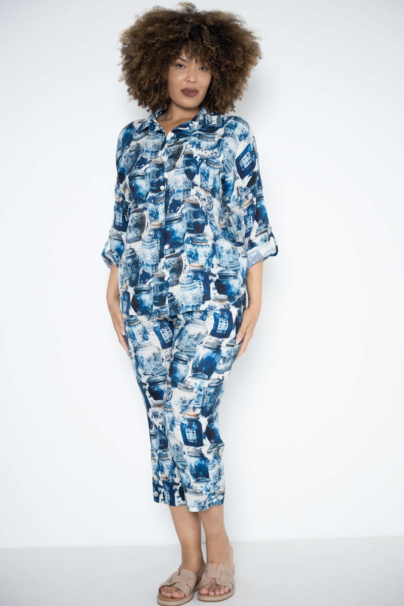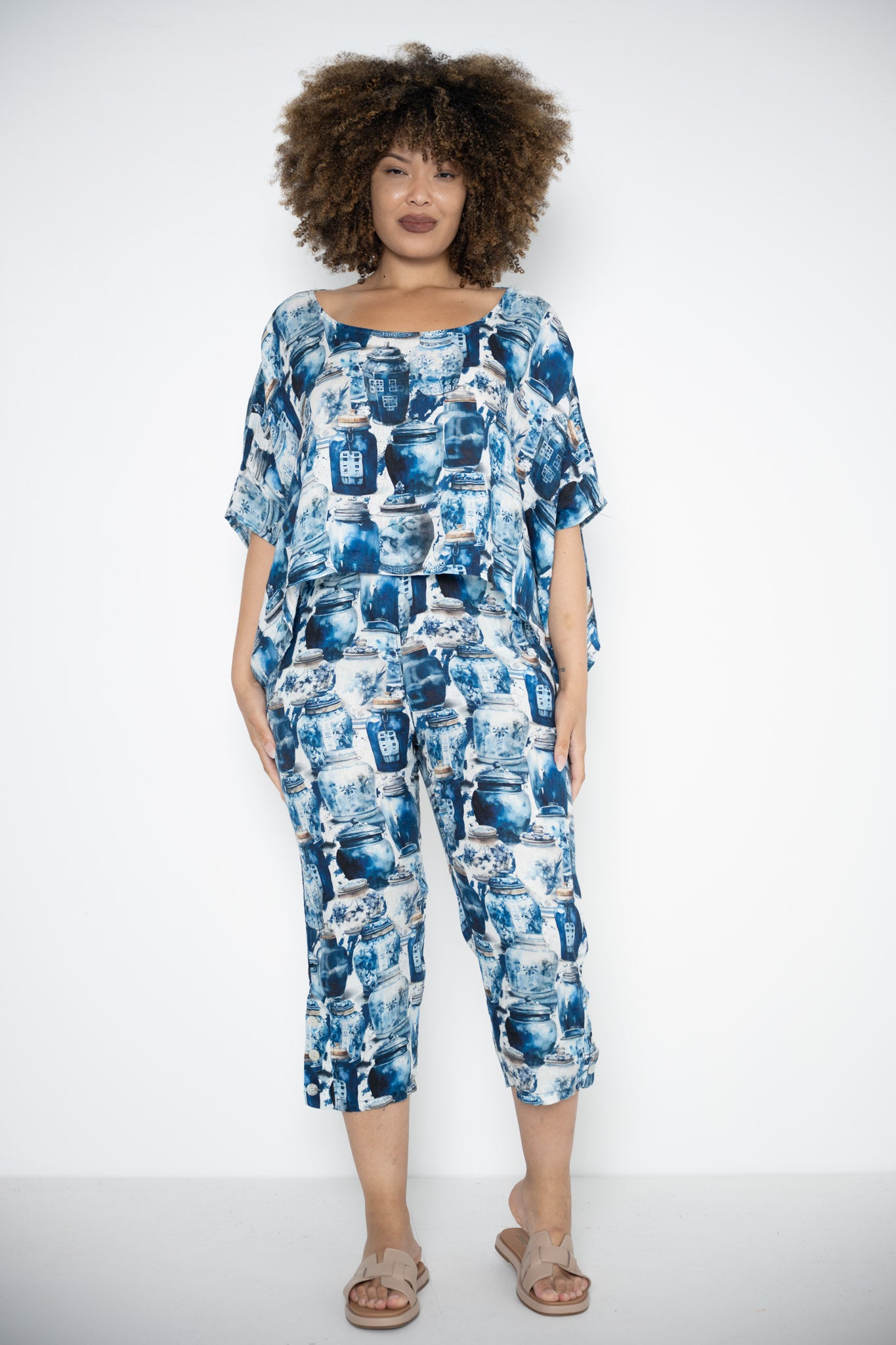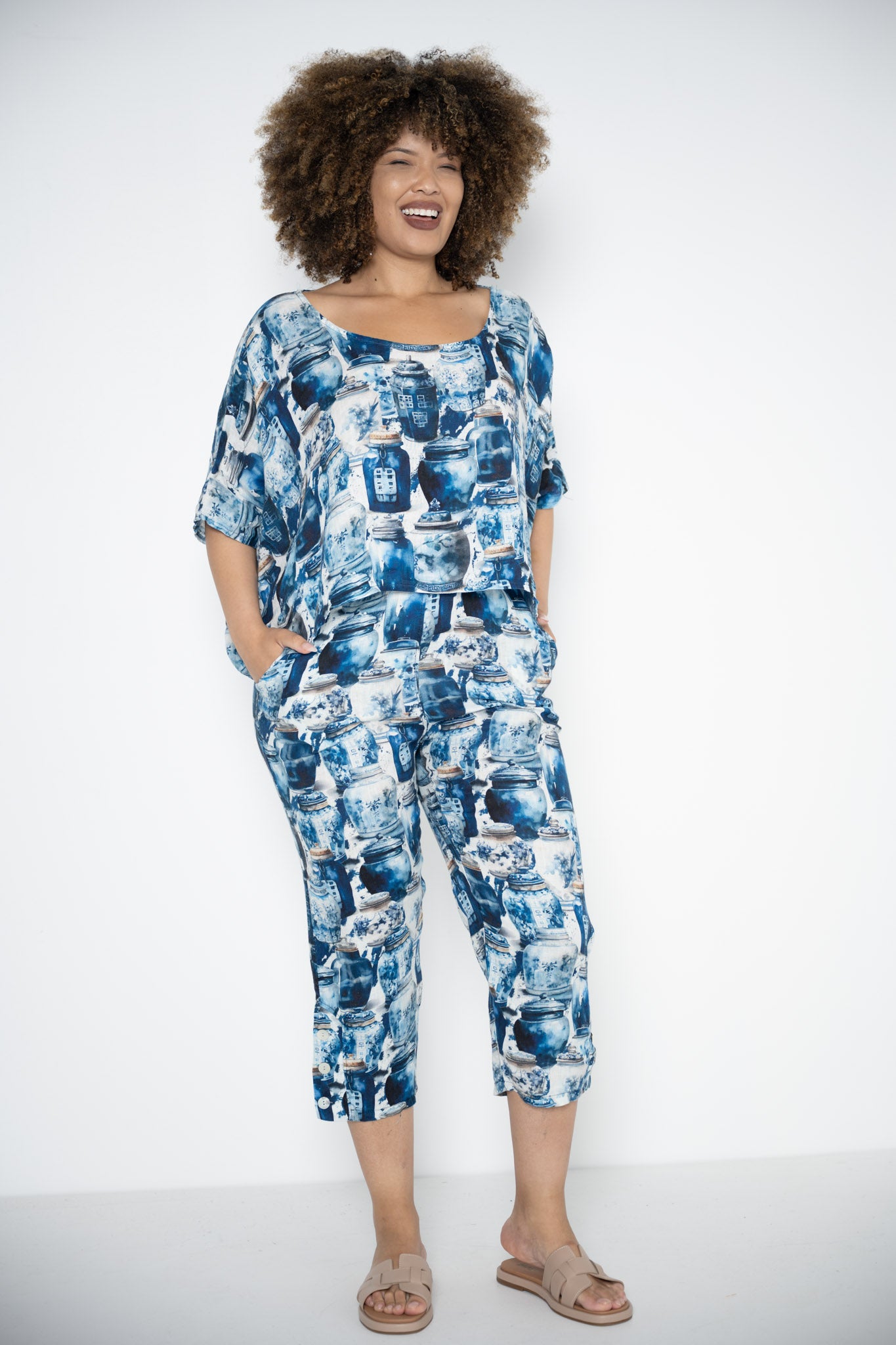 Whether styled with the matching Venetian Jars Shirt for a coordinated look or paired back with a simple white tee or tank, these pants make a quiet statement while remaining effortlessly versatile. Available up to XXL, they’re thoughtfully designed to suit a range of body shapes.