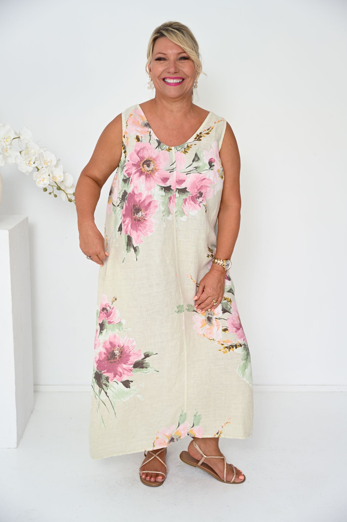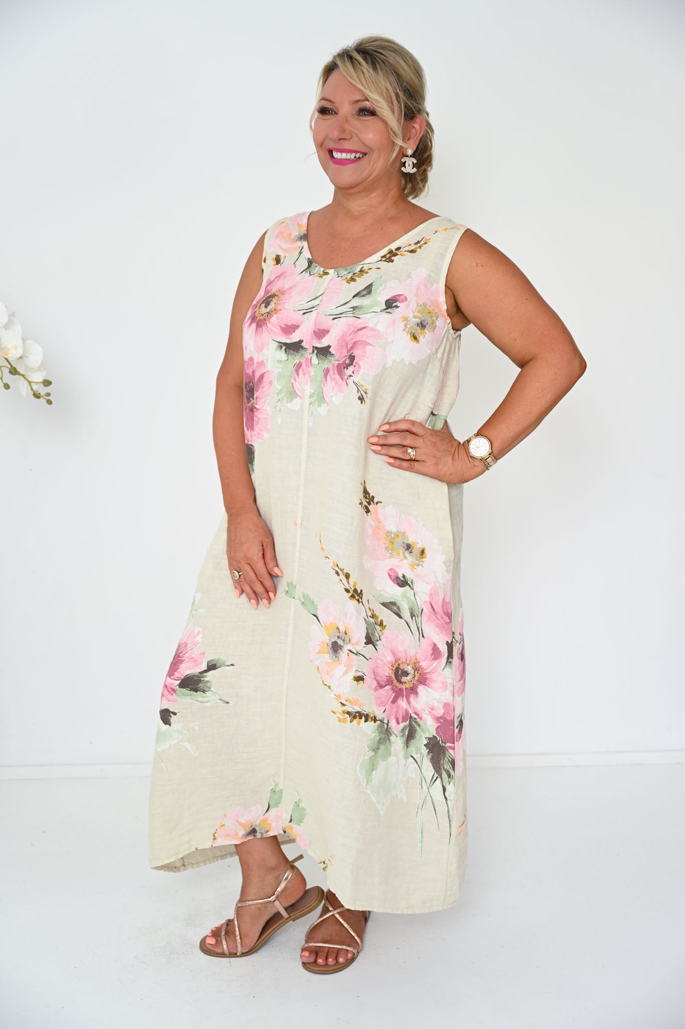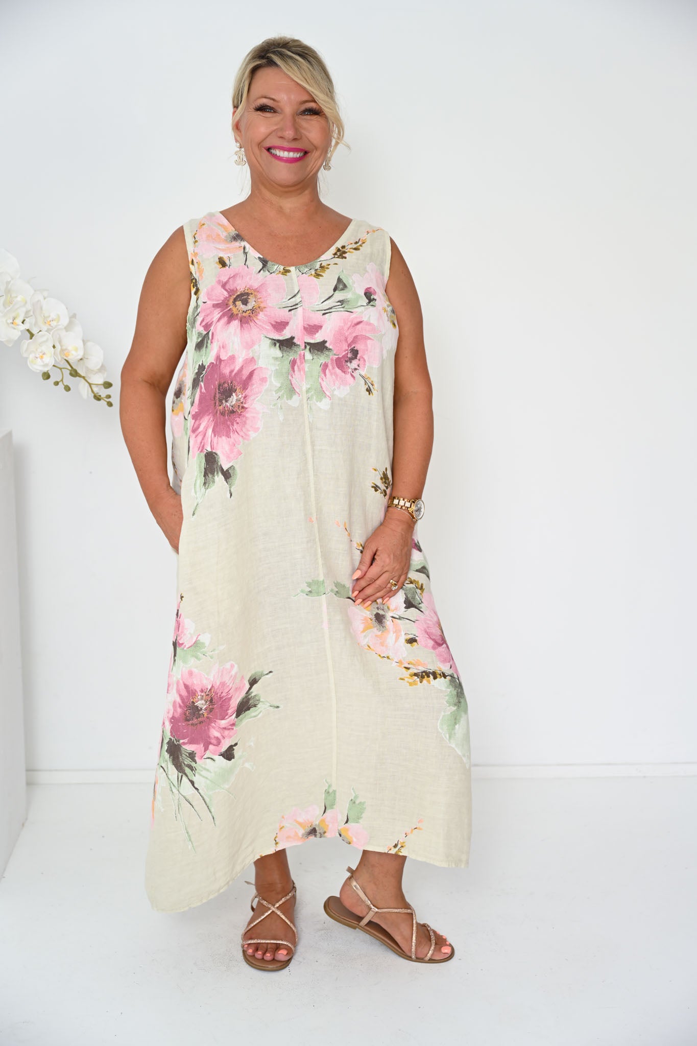 Designed to celebrate every body shape from XS to XXL, the Taz Dress is thoughtfully cut to flatter with ease and confidence. Elastic under the arms ensures a comfortable, supportive fit through the bust, while the relaxed silhouette moves fluidly over the body, enhancing natural curves without restriction. The result is a shape that feels as good as it looks—graceful, forgiving, and effortlessly feminine.