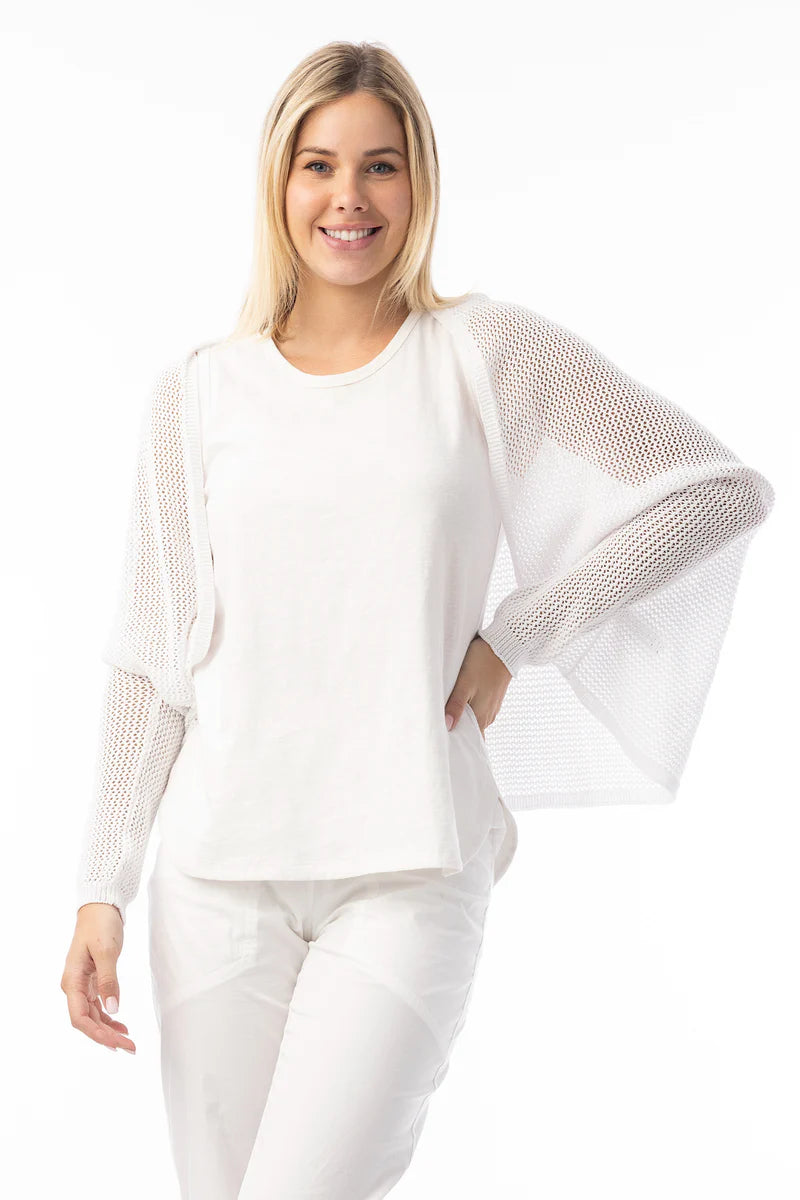 The White Knit Wrap – Your Summer Layering Essential. Made from 100% organic cotton, this lightweight knit wrap is soft, breathable, and perfect for warmer days. With its waist-length cut and relaxed waterfall collar, it adds effortless style and a touch of comfort to any summer outfit — ideal for breezy mornings or cool evenings.
