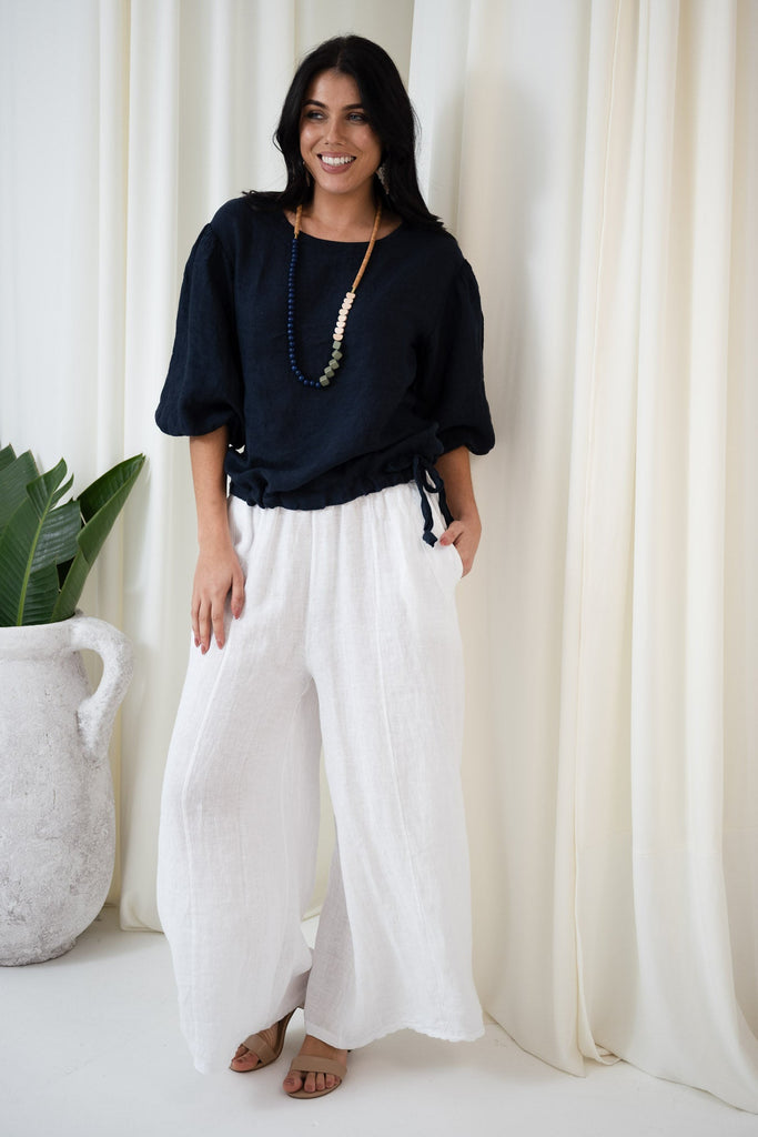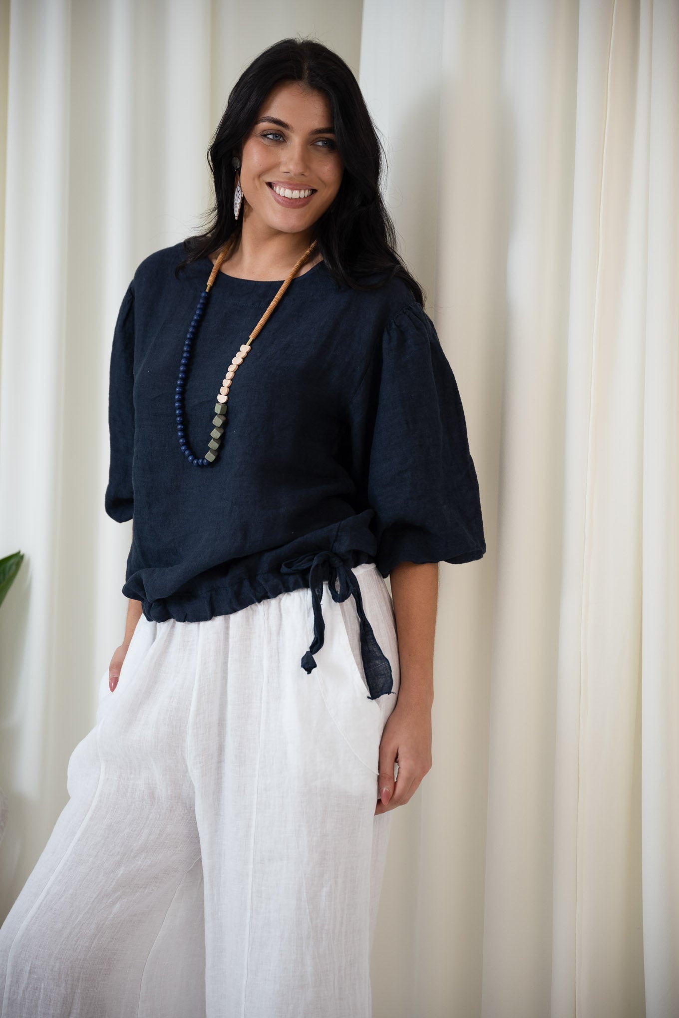 Sophisticated and effortlessly elegant, the Patrice Puff Sleeve Top in Navy brings a touch of coastal charm to your wardrobe. The deep, rich tone pairs beautifully with the top's airy silhouette, while the adjustable hem ensures a perfect fit every time.