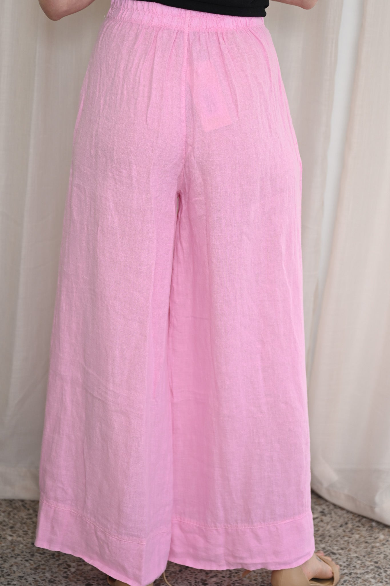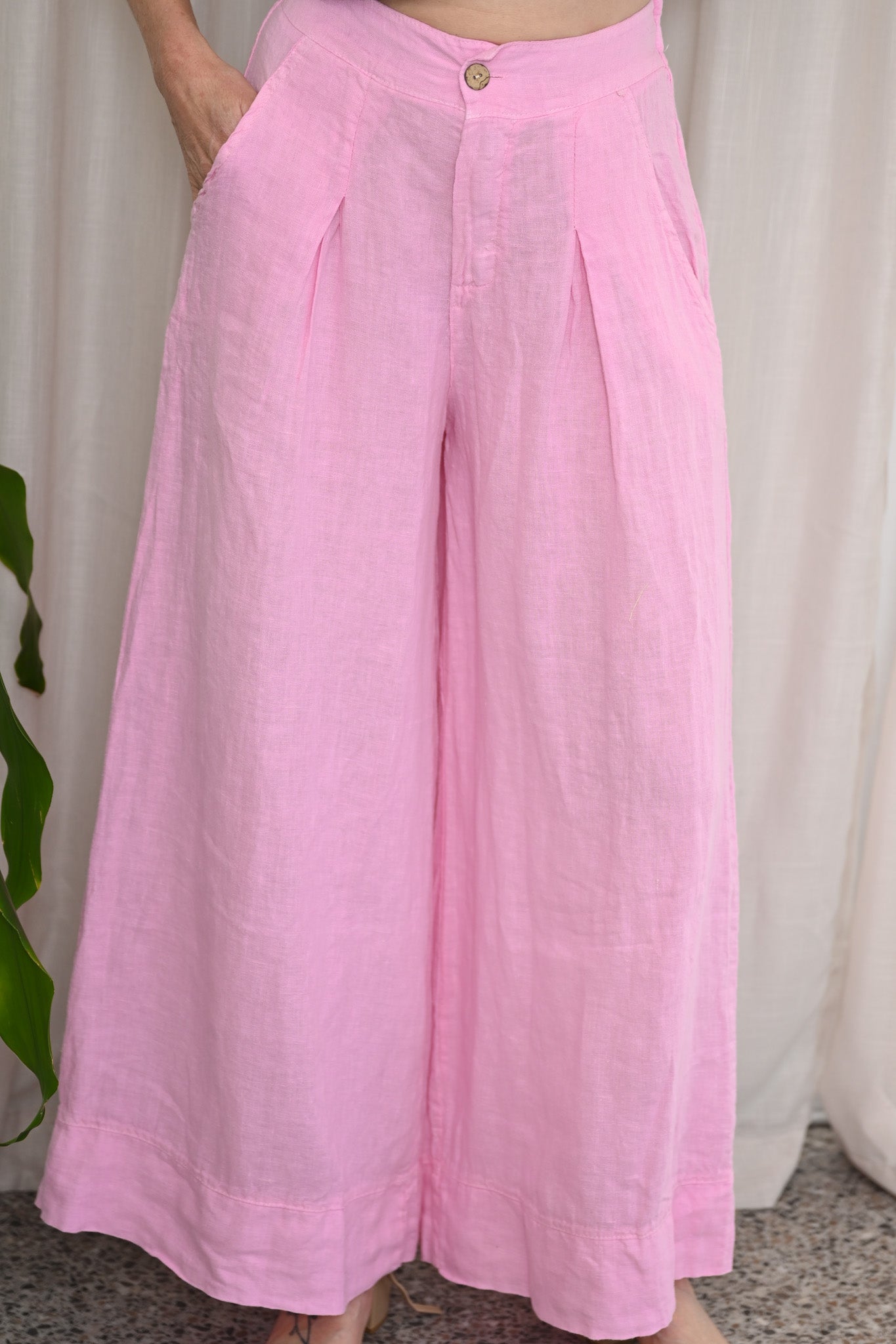Crafted from lightweight Italian linen, these pants are breathable and easy to wear in warmer conditions, delivering both comfort and polish. The vibrant candy hue brings a cheerful pop of colour, making them a standout choice for everyday wear or elevated occasions. Finished with practical hip pockets and a softly tailored feel, they strike the perfect balance between ease and sophistication.