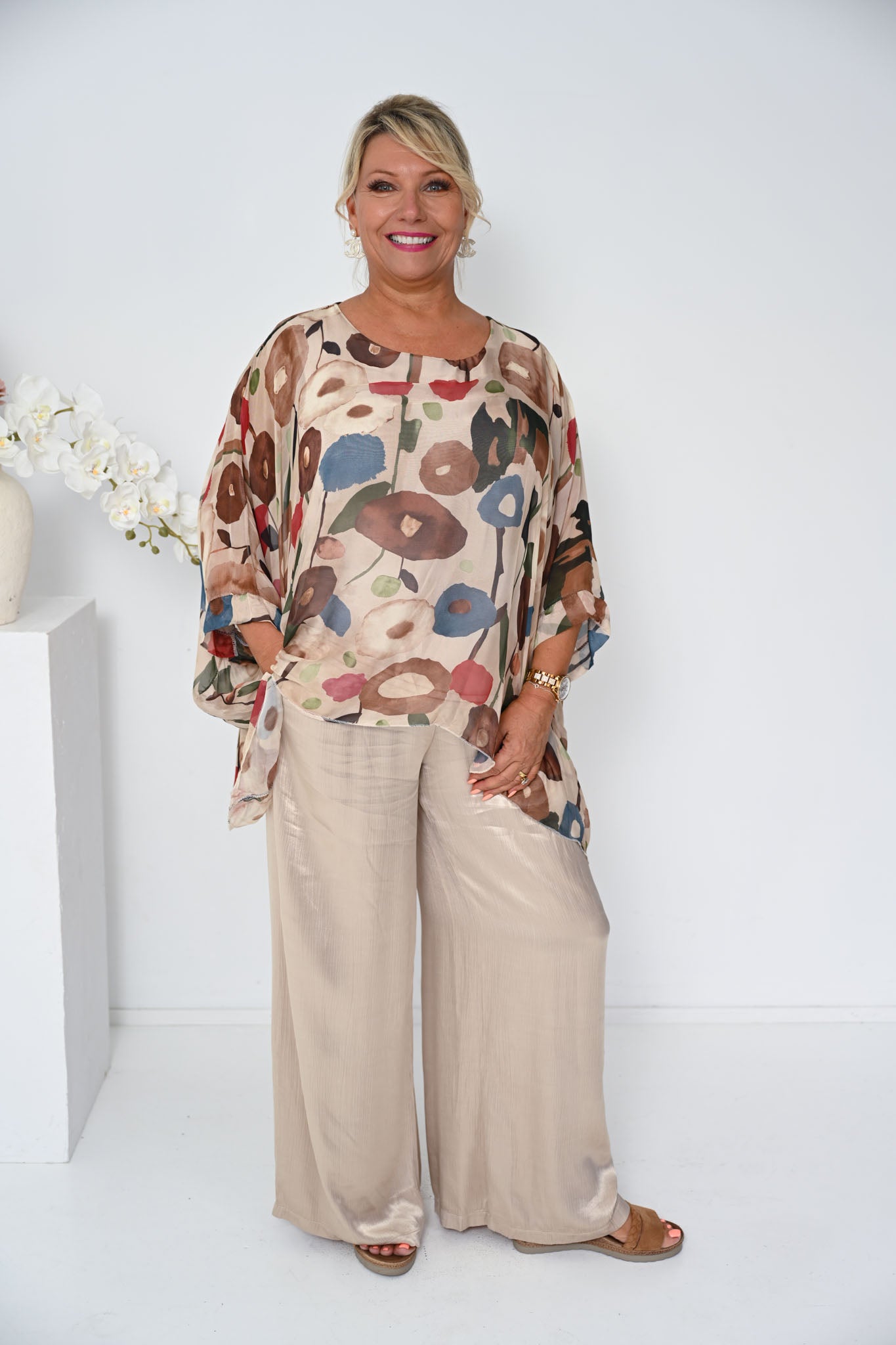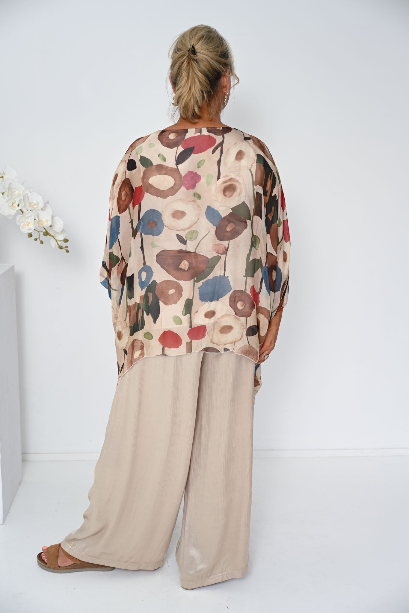 Designed with a relaxed silhouette, the Poppy Silk Top drapes effortlessly over the body for a flattering and comfortable fit. The lightweight silk outer layer moves beautifully with a soft, natural sheen, while the smooth inner lining ensures breathable comfort throughout the day.