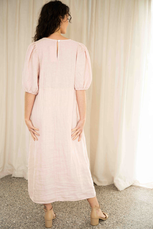 The Emma Dress in Pink is a beautifully understated piece that blends soft structure with everyday ease. Made from breathable linen with a smooth finish, it offers a clean, polished look that feels light and effortless. The gentle pink tone adds a fresh, feminine touch, making it a versatile option for everything from casual days to more styled occasions.