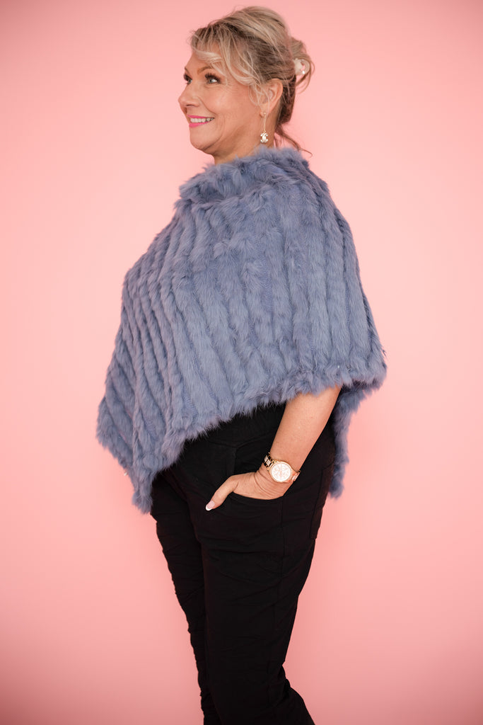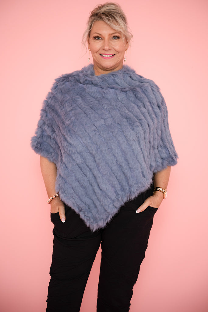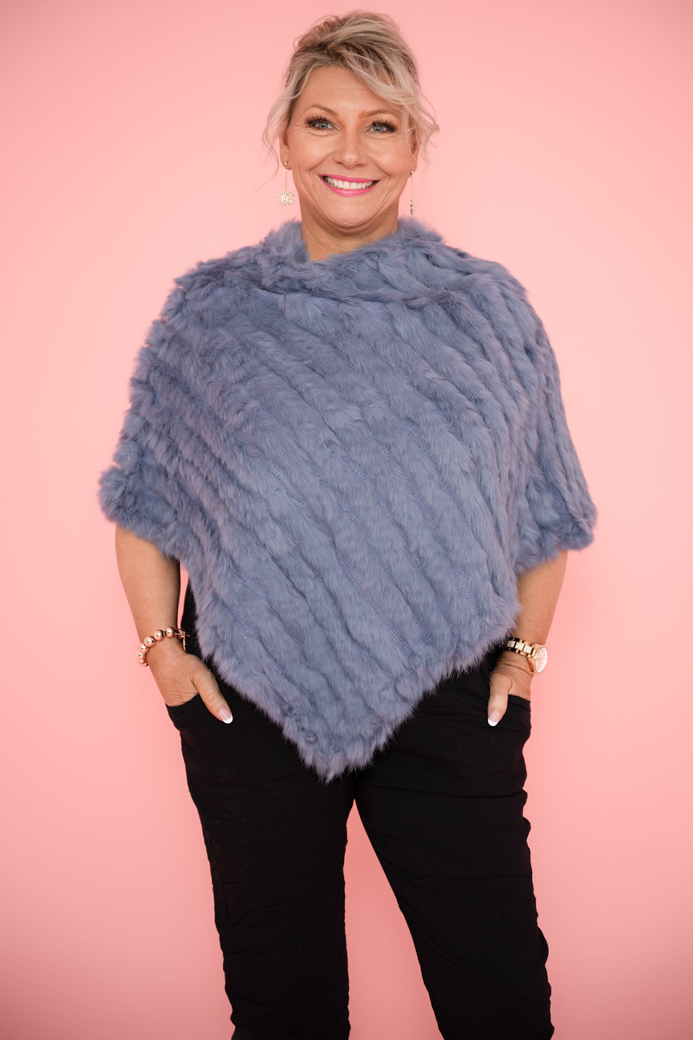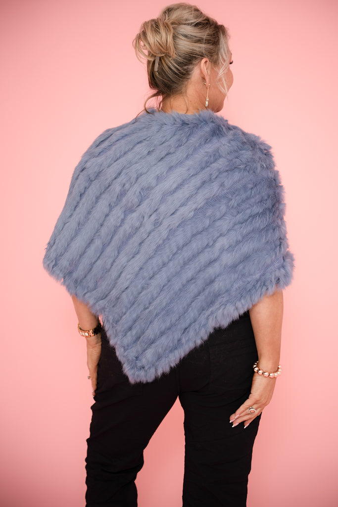 Wrap yourself in luxury with our Rabbit Fur Poncho, a statement in softness and sophisticated style. Designed in a flattering diamond shape with elegant points at the front and back, this poncho drapes beautifully for a silhouette that’s both relaxed and refined.