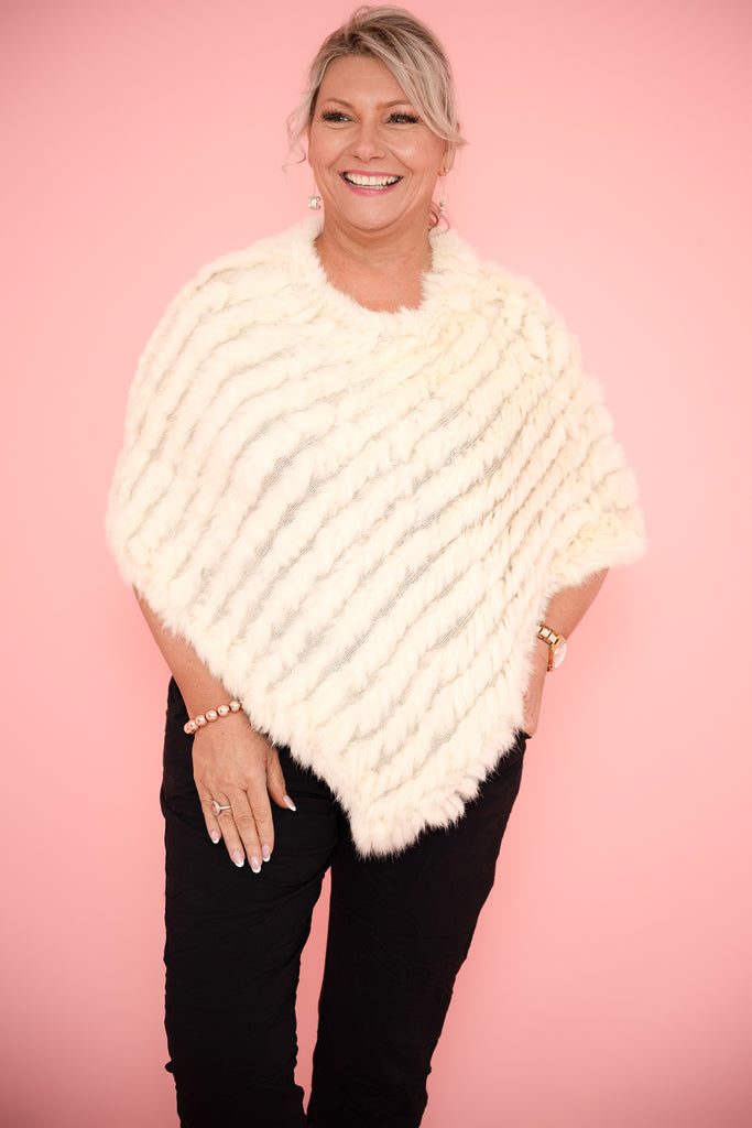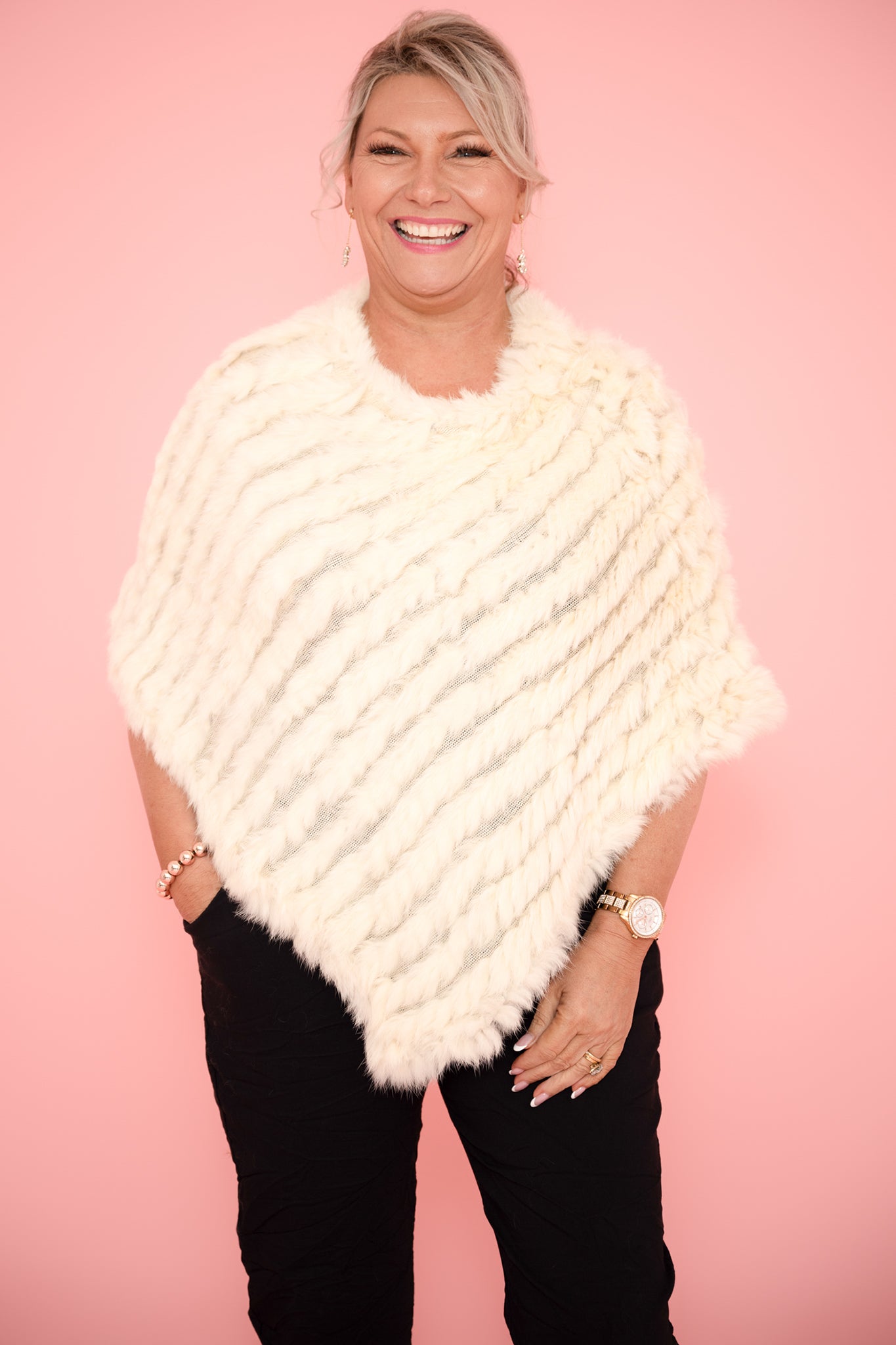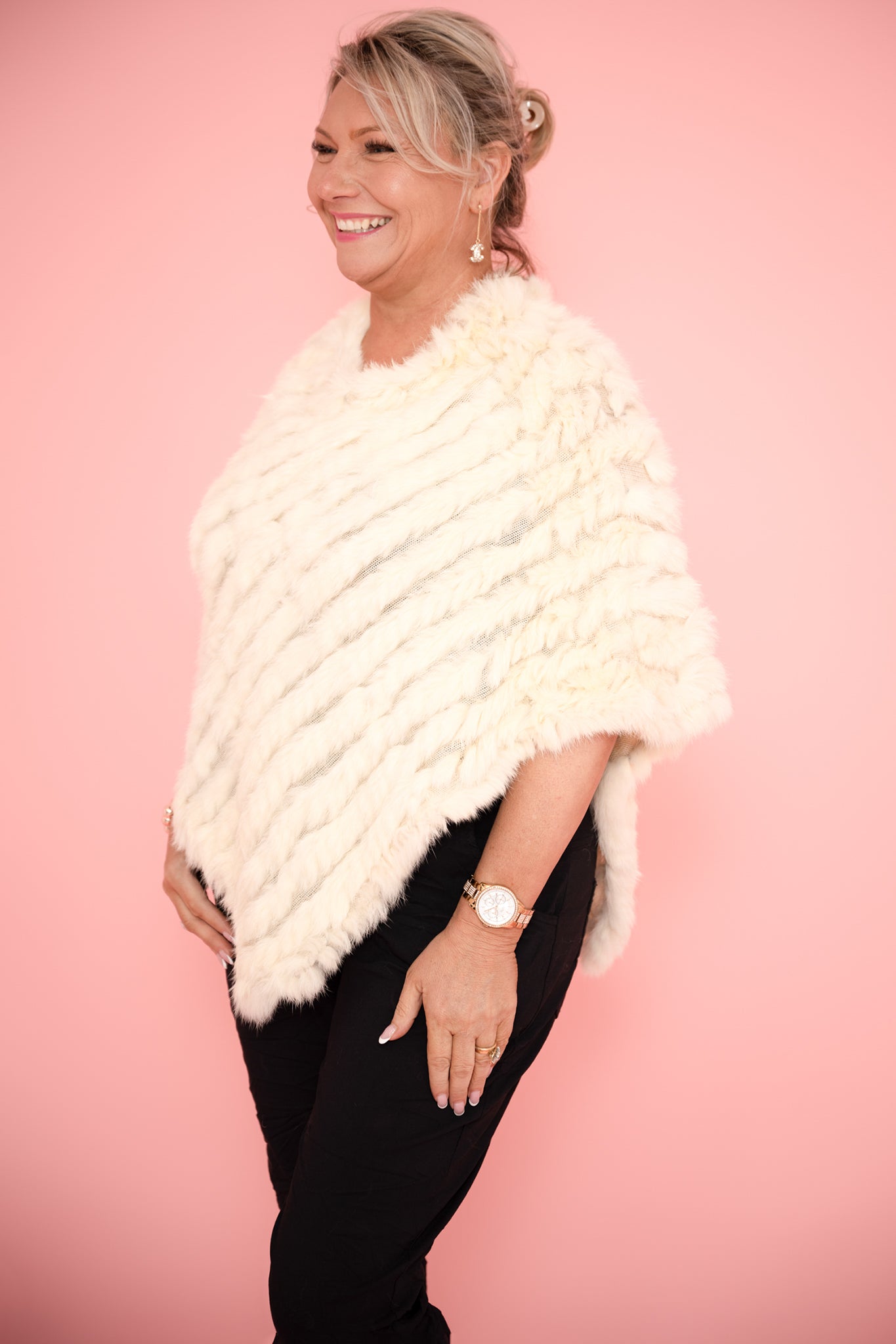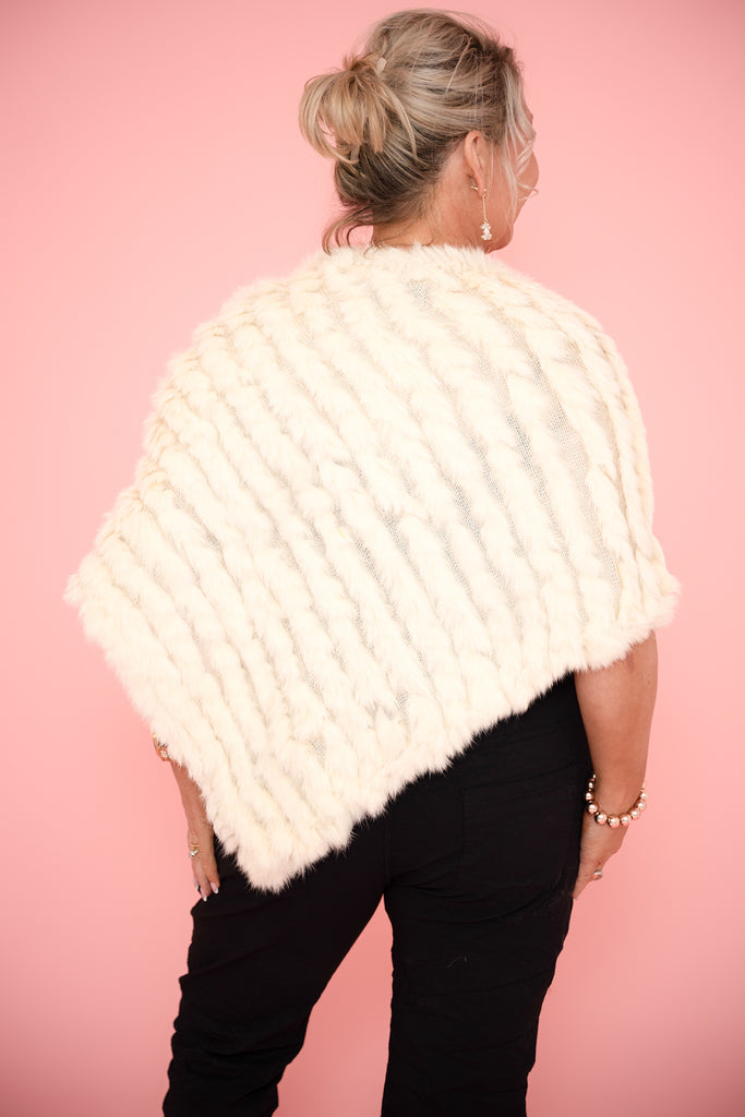 Wrap yourself in luxury with our Rabbit Fur Poncho, a statement in softness and sophisticated style. Designed in a flattering diamond shape with elegant points at the front and back, this poncho drapes beautifully for a silhouette that’s both relaxed and refined.