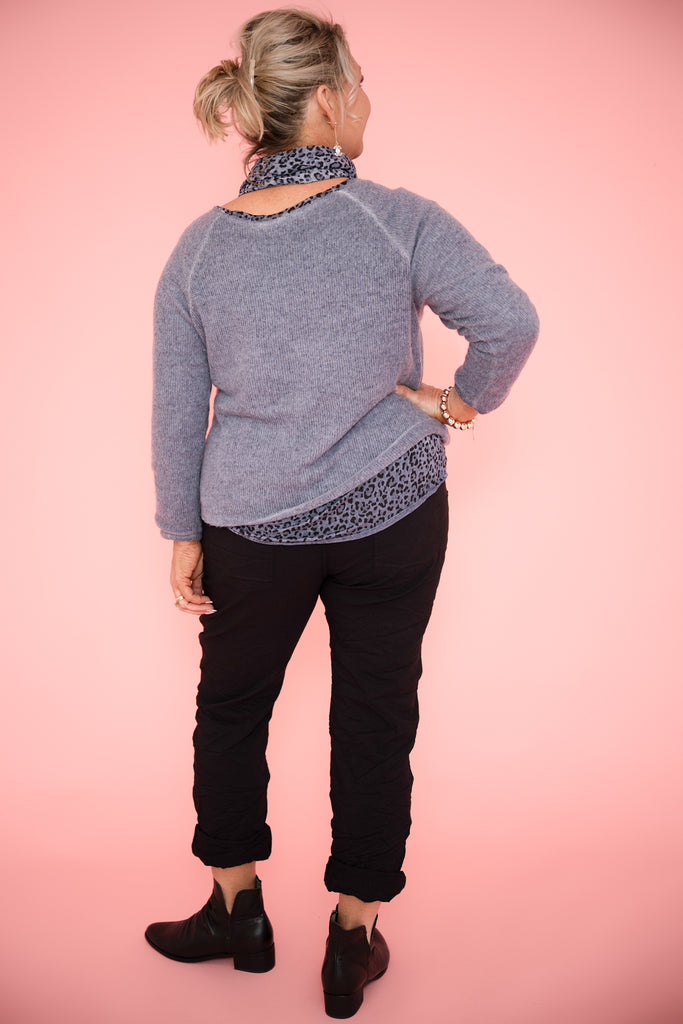 Paired with classic denim, tailored pieces, or soft neutrals, the Roam Jumper in Navy brings depth and quiet edge to your wardrobe—anchored in comfort, with just a hint of the untamed.