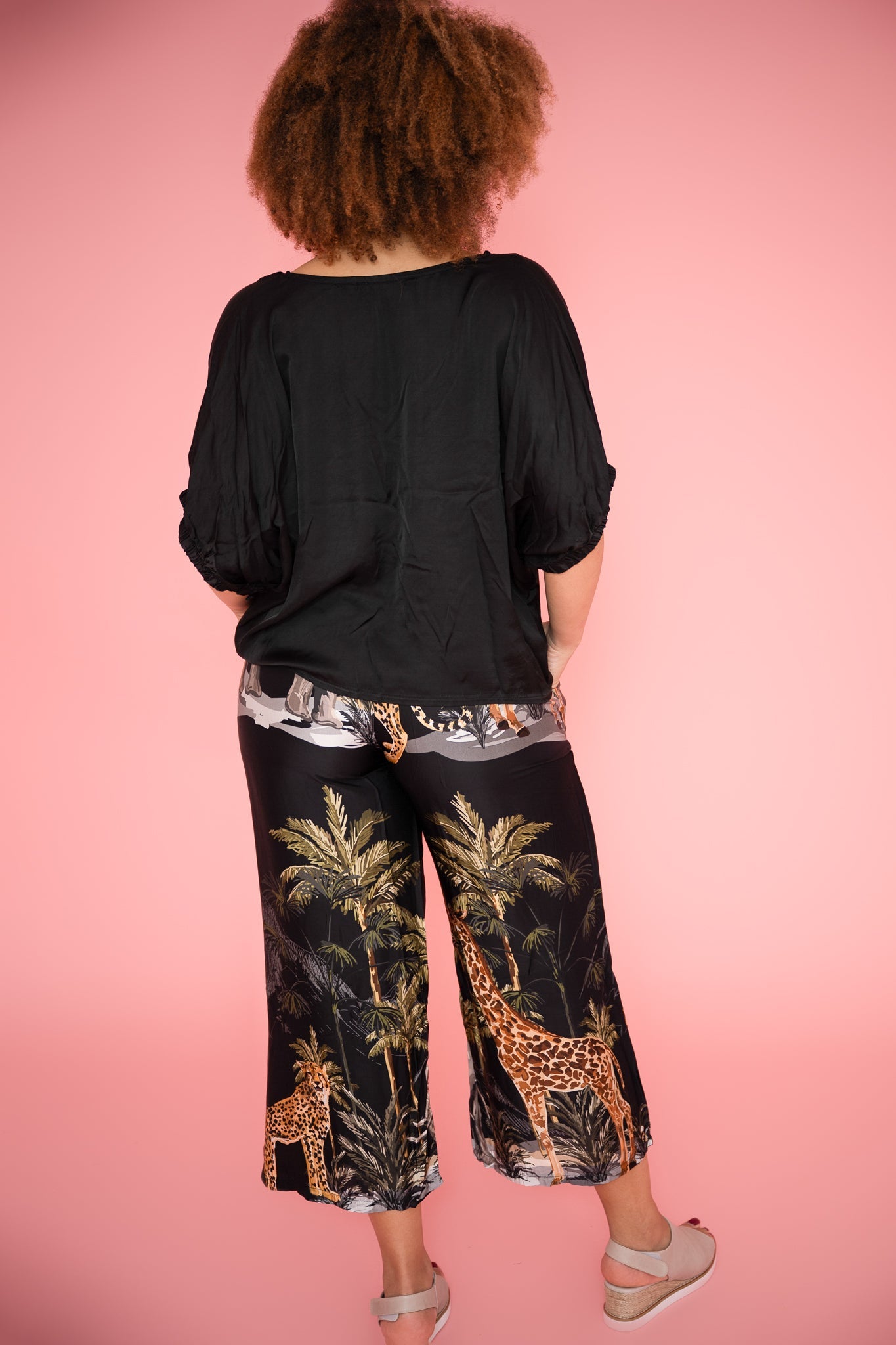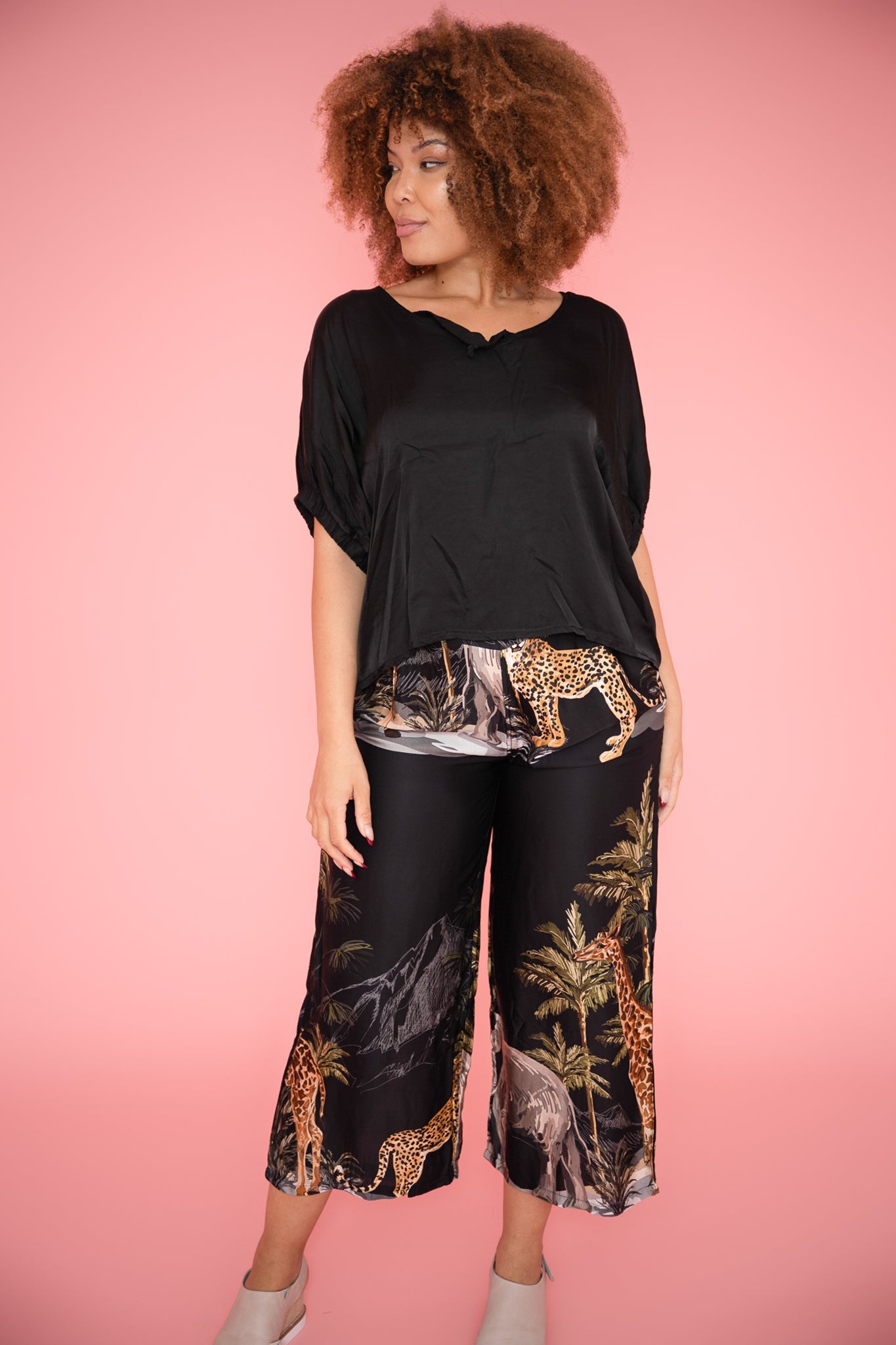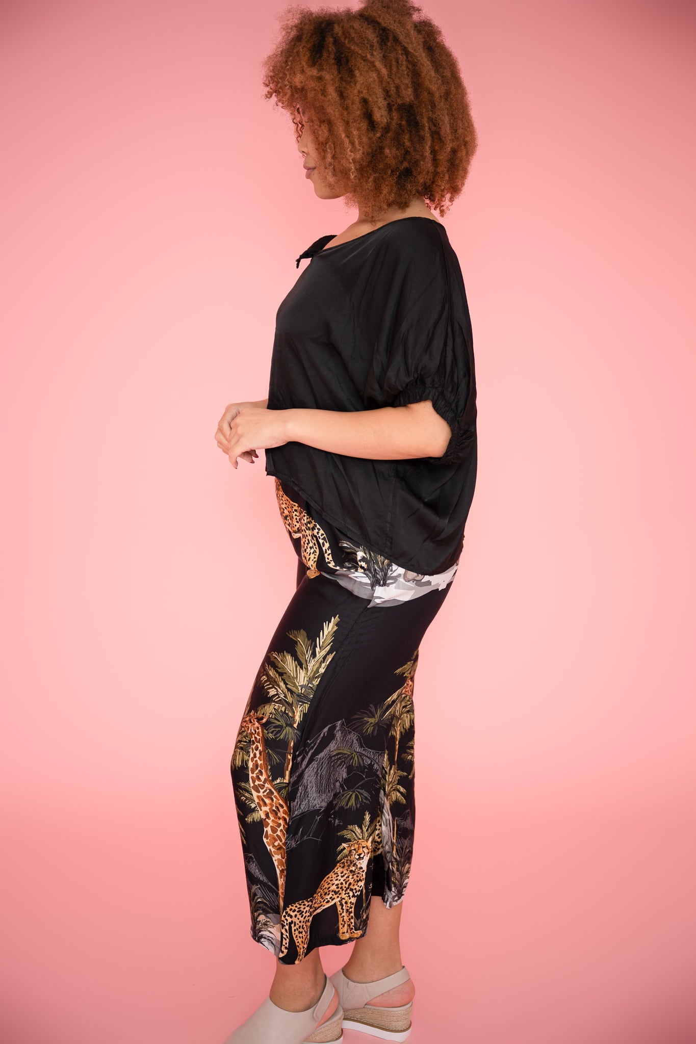 Create a striking monochrome ensemble when paired with our Black Safari Pants, as elegantly demonstrated by Rosaline. For a contemporary layered effect, try styling over the Black Sanctuary Dress—an unexpected combination that showcases your fashion versatility. The SoHo Top's fluid silhouette promises to become your go-to piece for those evenings when lasting impressions matter.