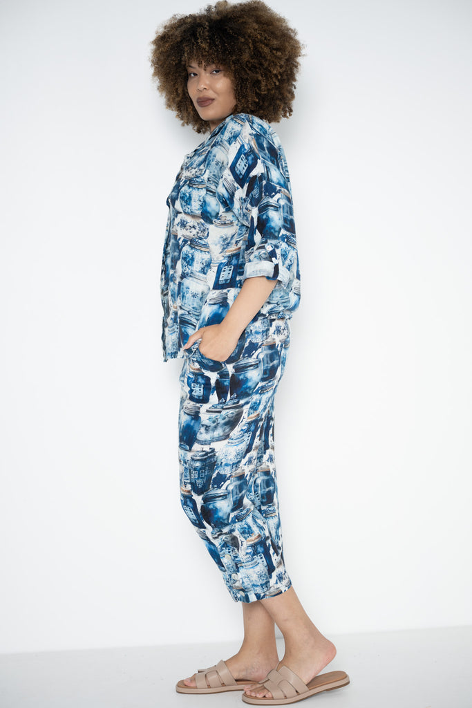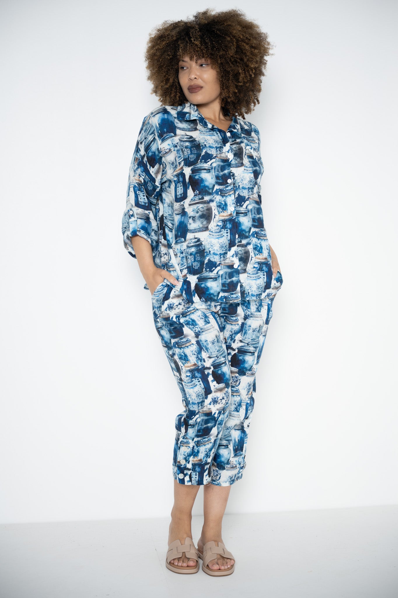 Pair it with the Runaway Pants in navy or your favourite linen trousers for a look that feels both timeless and fresh. Light, breathable, and elevated by its detailed print, the Venetian Jars Shirt is a standout staple for the season ahead.
