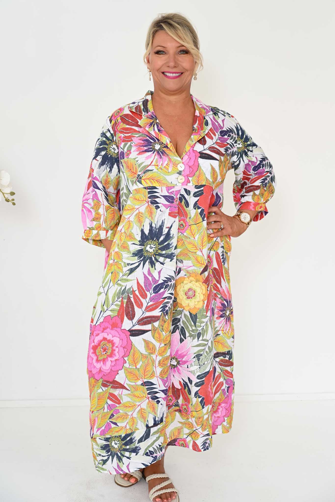 Embrace effortless warm-weather style with the Summertime Dress, a piece designed to capture the light, carefree feeling of the season while maintaining a sense of quiet refinement. Featuring a vibrant all-over floral print, the dress blends playful colour with a thoughtfully tailored silhouette, creating a look that feels both fresh and timeless.