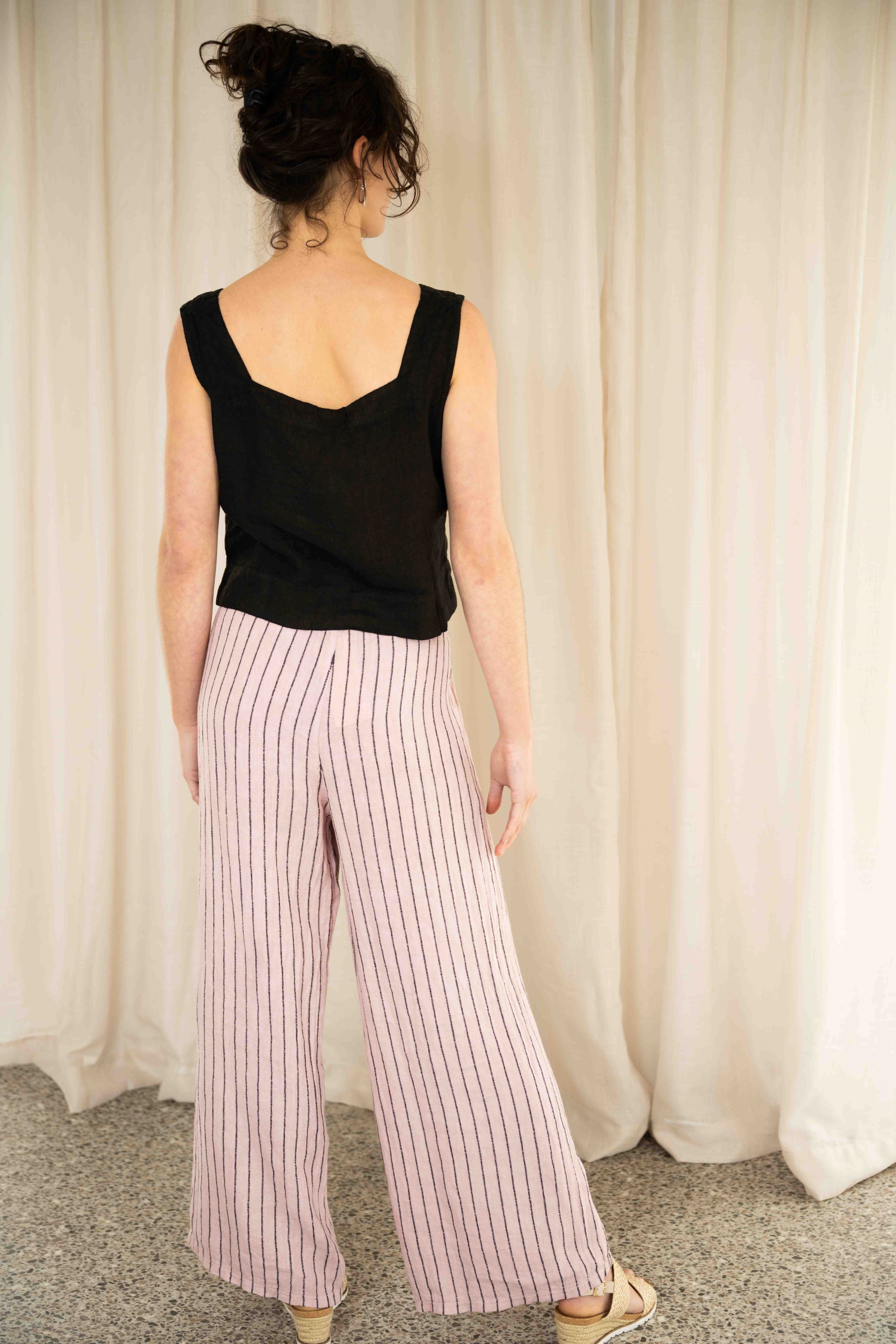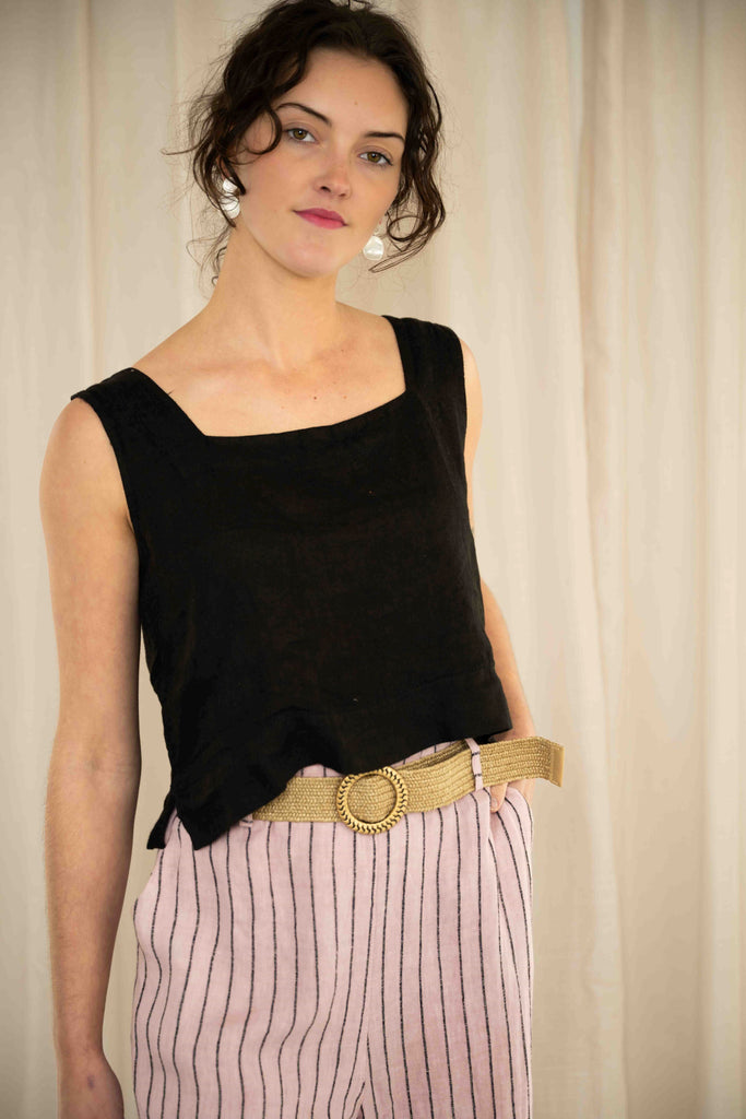 Shown here with the Salvatore Pants in Pink for contrast, the Surfers Cropped Top in Black easily pairs with everything from tailored linen to relaxed denim. Dress it up, keep it casual, or layer it through the seasons — it's a go-to staple you'll reach for again and again.