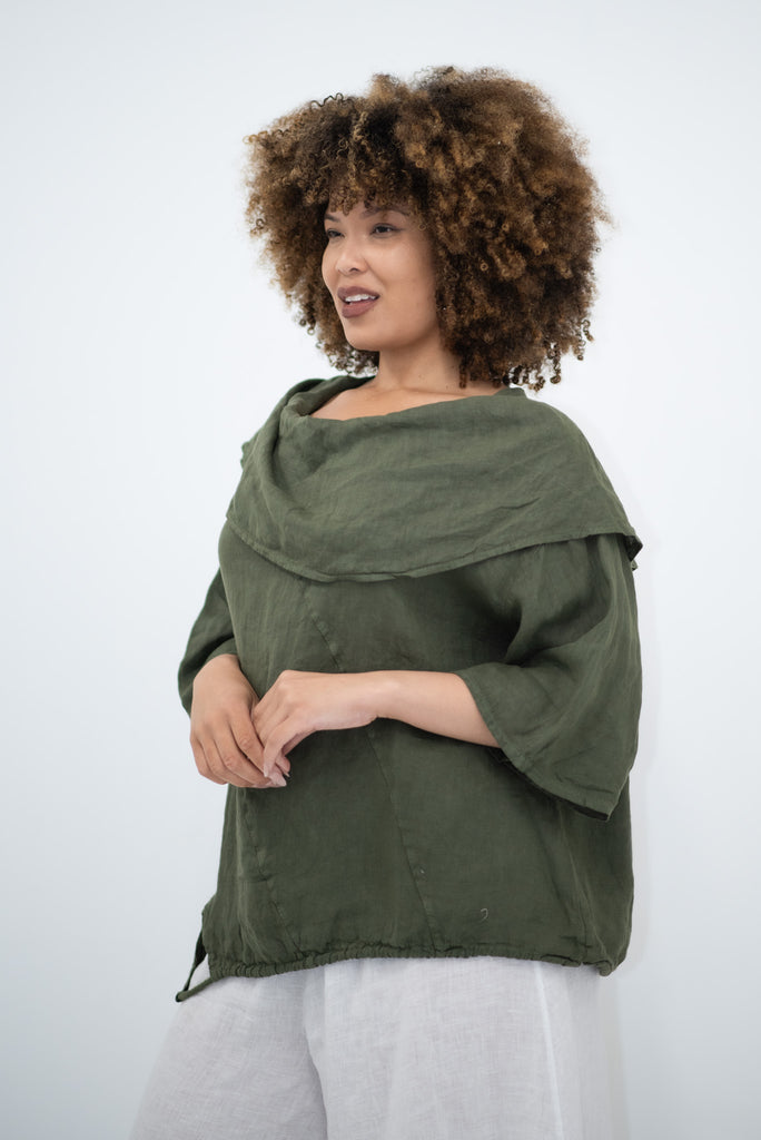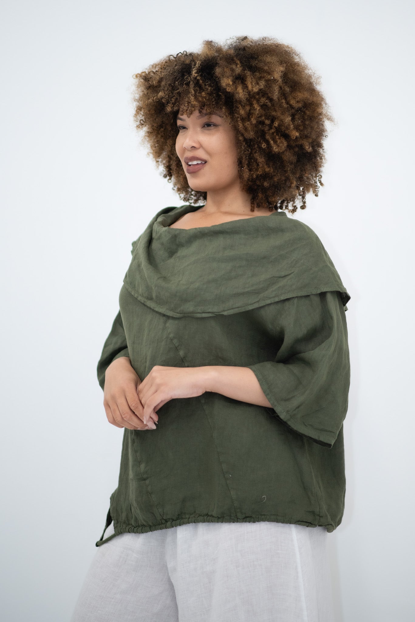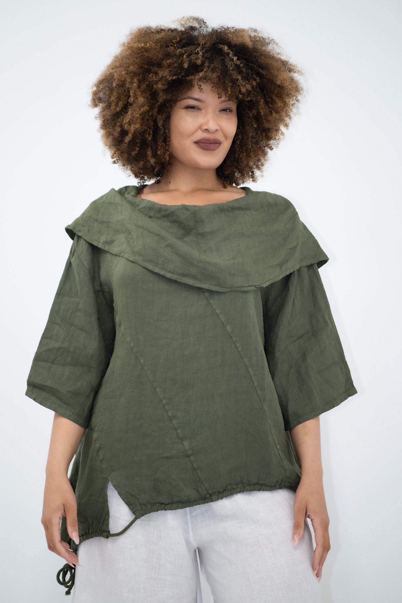 The Tamara Top in Khaki brings a sense of understated sophistication in a soft, earthy tone. Crafted in a warm neutral shade, it offers a natural balance of structure and ease. The gentle drape of the neckline folds effortlessly into the fabric, giving it a refined yet relaxed silhouette.