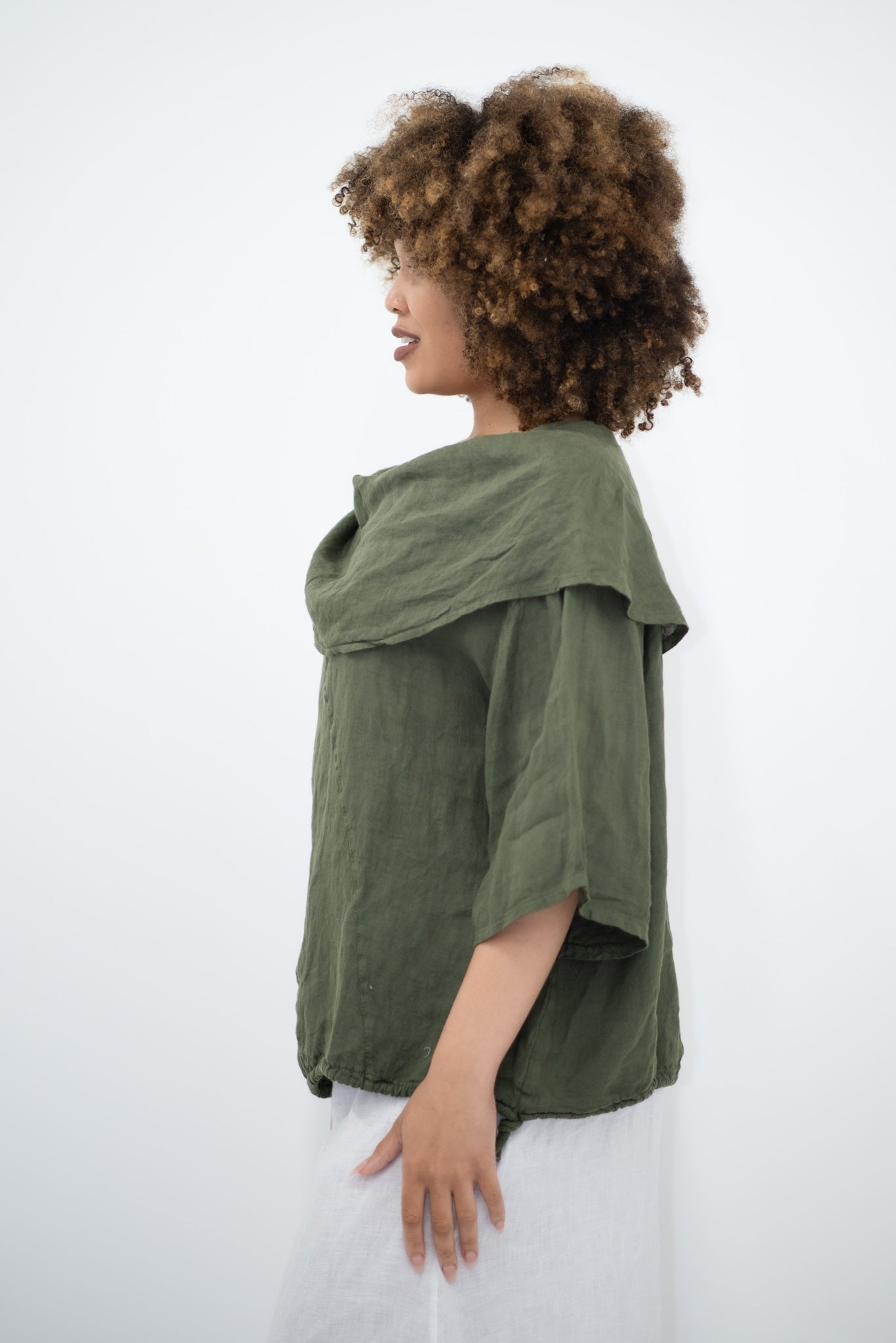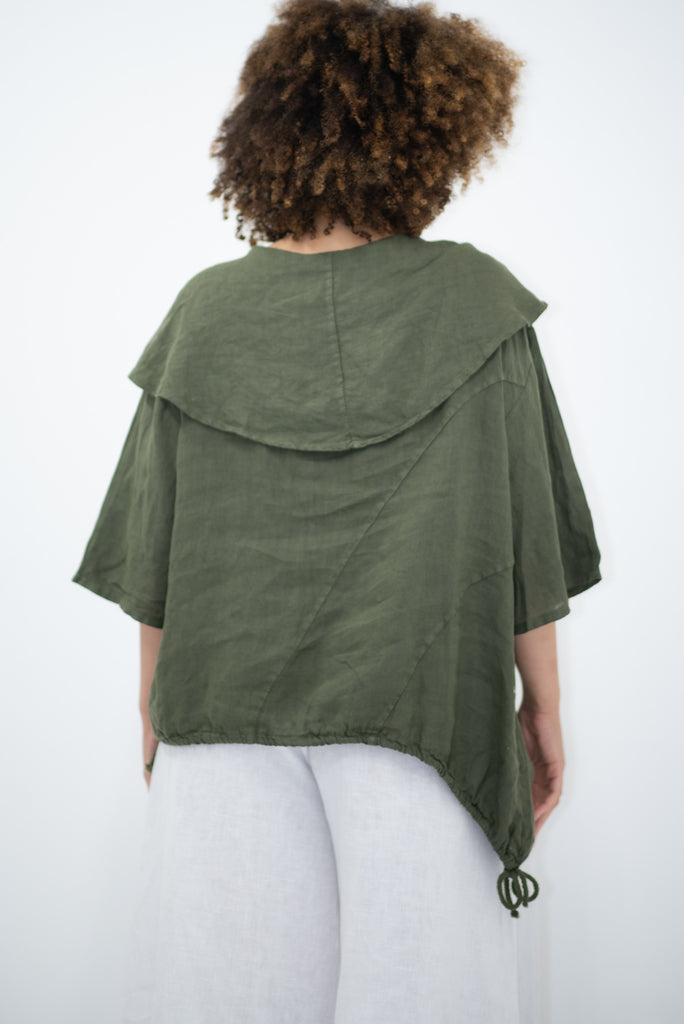 An adjustable drawstring at the hemline allows you to tailor the fit—cinched for definition or loosened for a more laid-back look. Whether styled casually or elevated for an evening out, the Tamara Top in Khaki embodies modern simplicity with a timeless, natural charm.