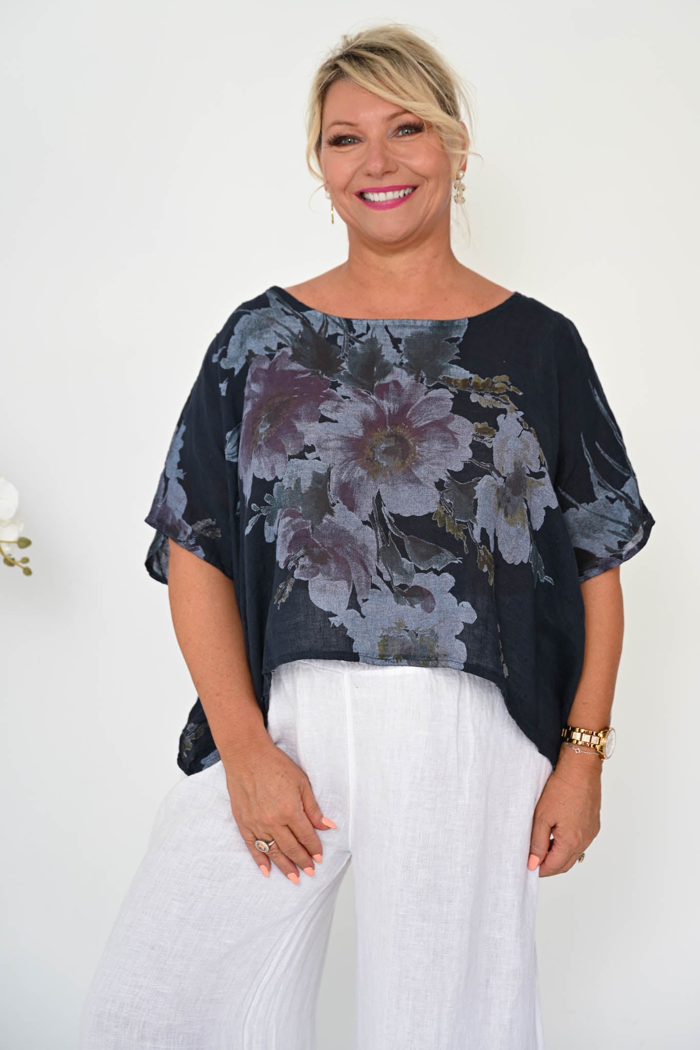 Equally suited to elevated styling or laid-back days, the Tia Top in navy brings depth and versatility to warm-weather dressing, combining timeless appeal with relaxed sophistication.