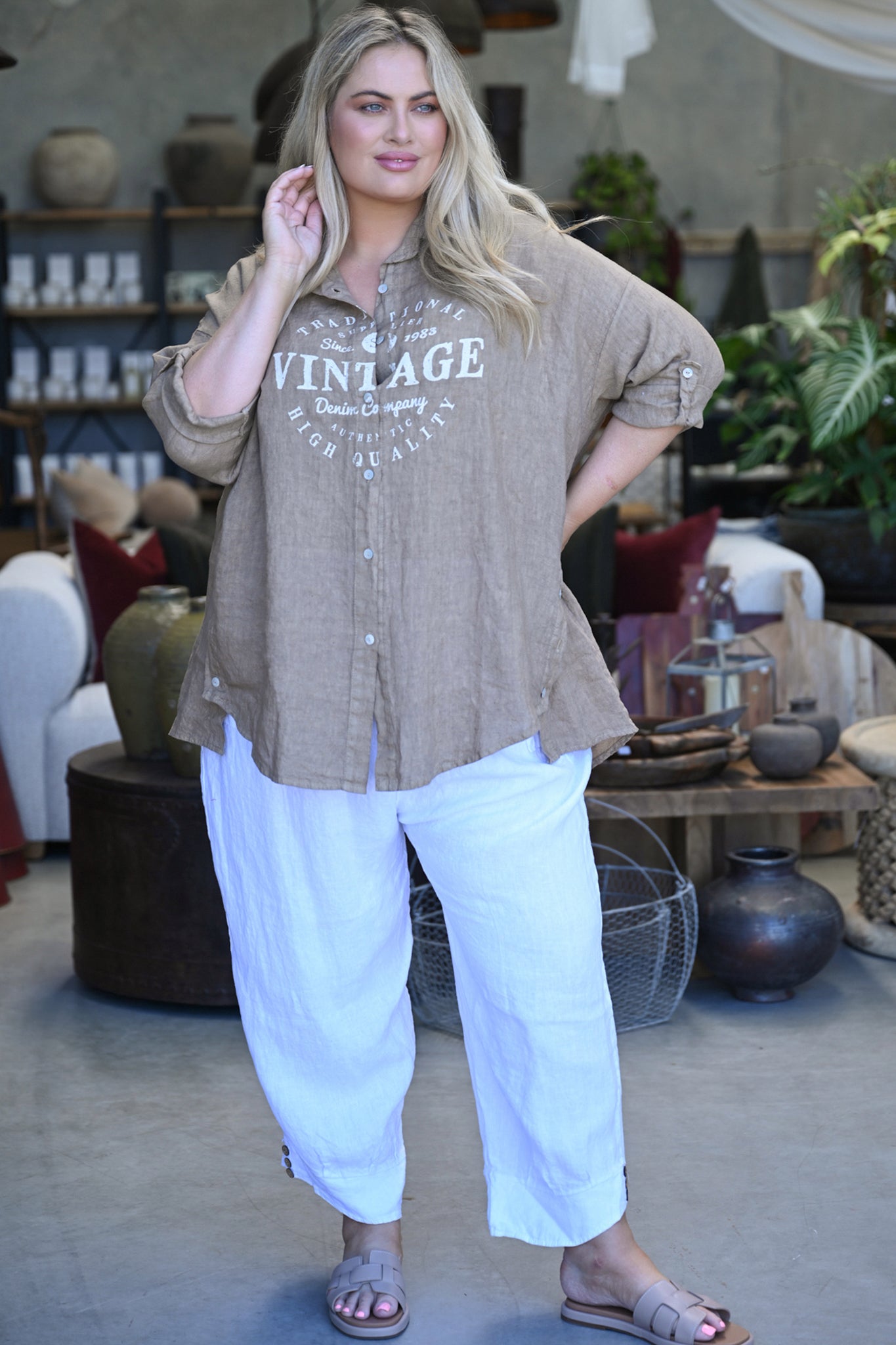 The Vintage Shirt in Caramello brings a rich, sun-warmed tone to a relaxed, oversized silhouette. Made from 100% linen, it’s designed to fall just above the knee—perfectly balancing the ease of a shirt with the versatility of a dress.