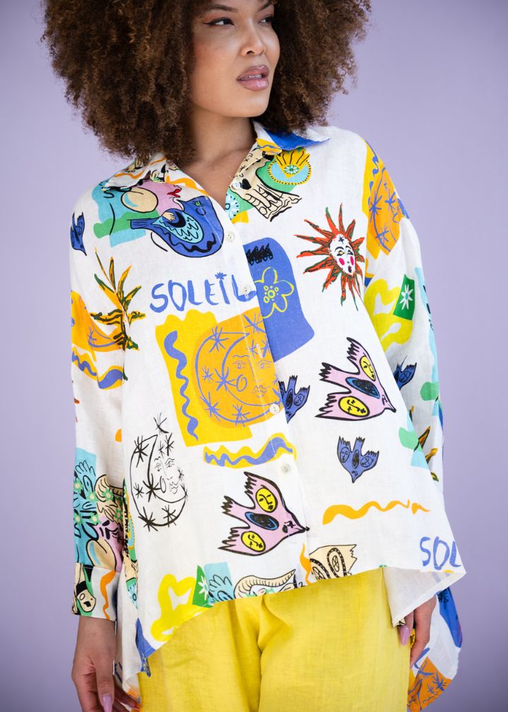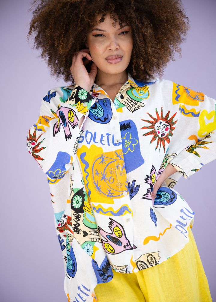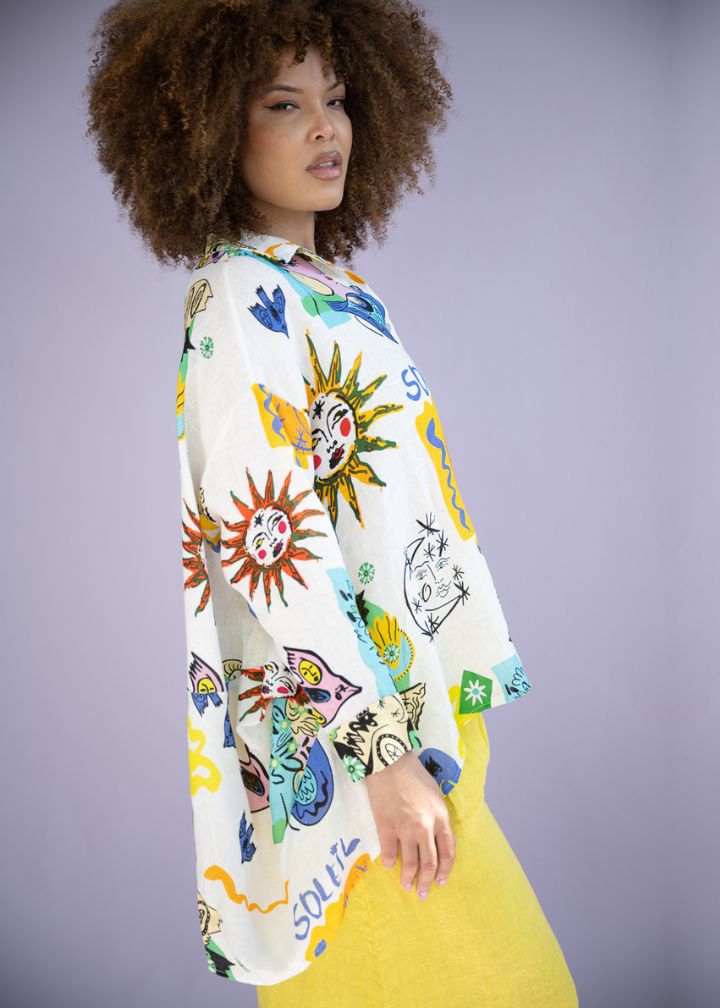 Embrace the stars with the Lacassa Zodiac Button Front Shirt, a celestial blend of playful energy and effortless sophistication. Whether you're daydreaming or stepping out, this piece will have you shining bright.