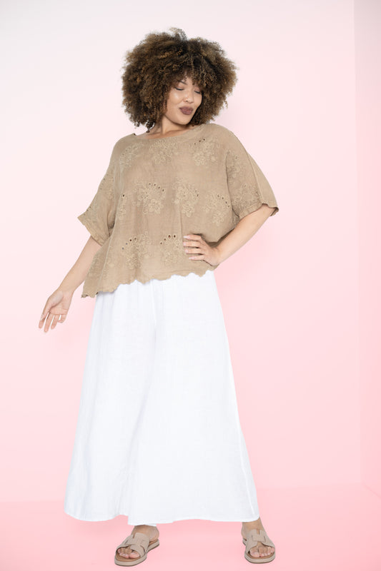 - Wide-leg linen culotte for an effortlessly elegant silhouette